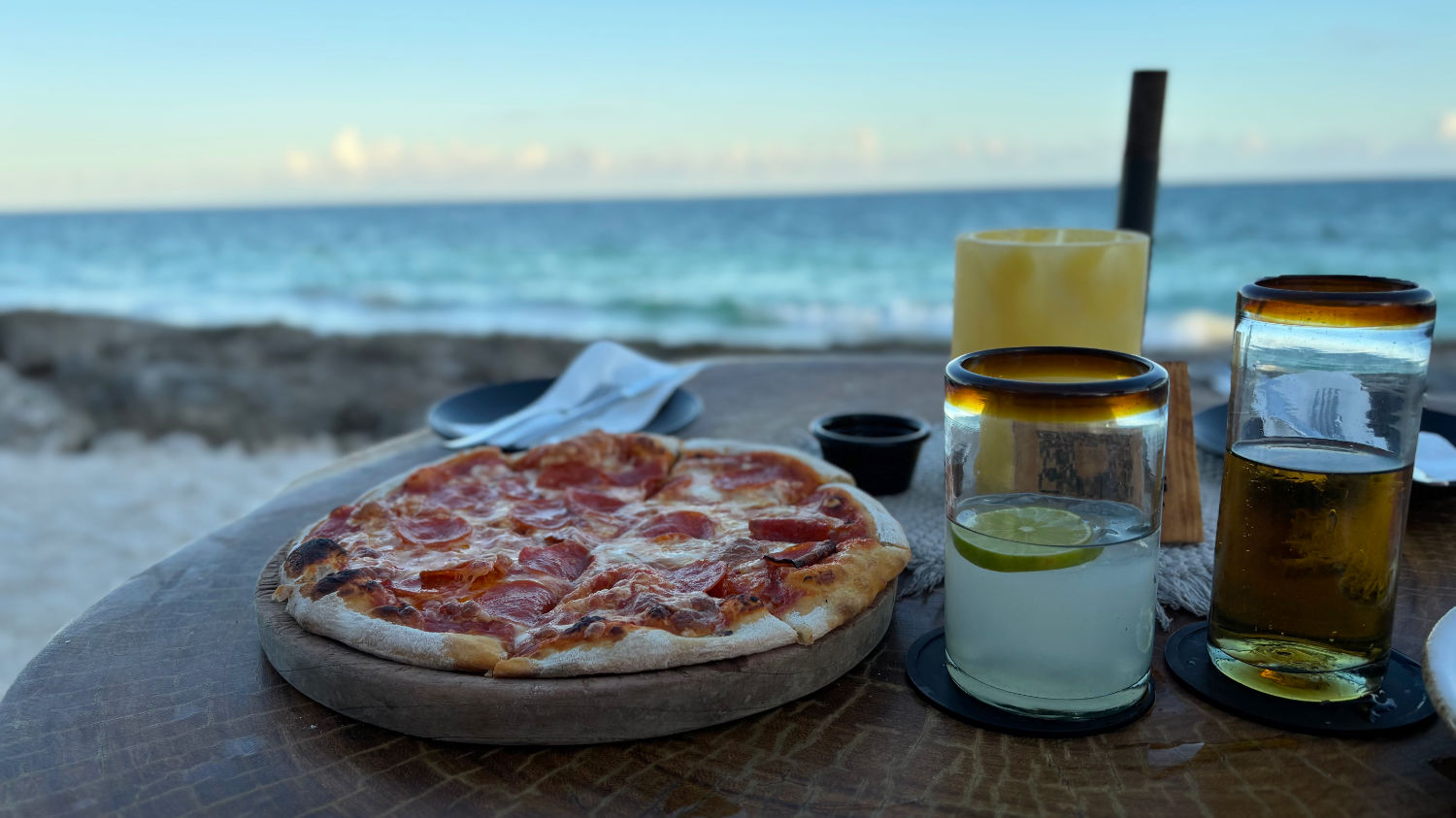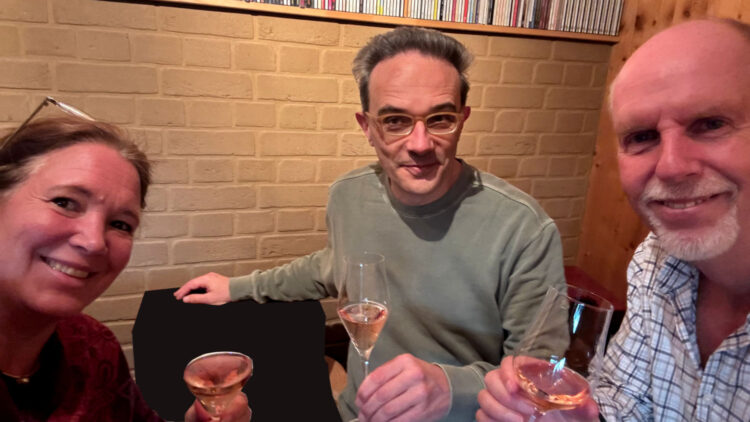So bleibt ein ausgiebiger Ohrenschmaus mit folgendem Pizzaschmaus nicht aus. Der von Ricard kredenzte „Cremant“, ein vorzüglicher, champagnerartiger Sekt, schmeckte uns so gut, dass wir eine Flasche davon im Denns BioMarkt, Michelfeld mitnehmen mussten – ging nicht anders. 😅