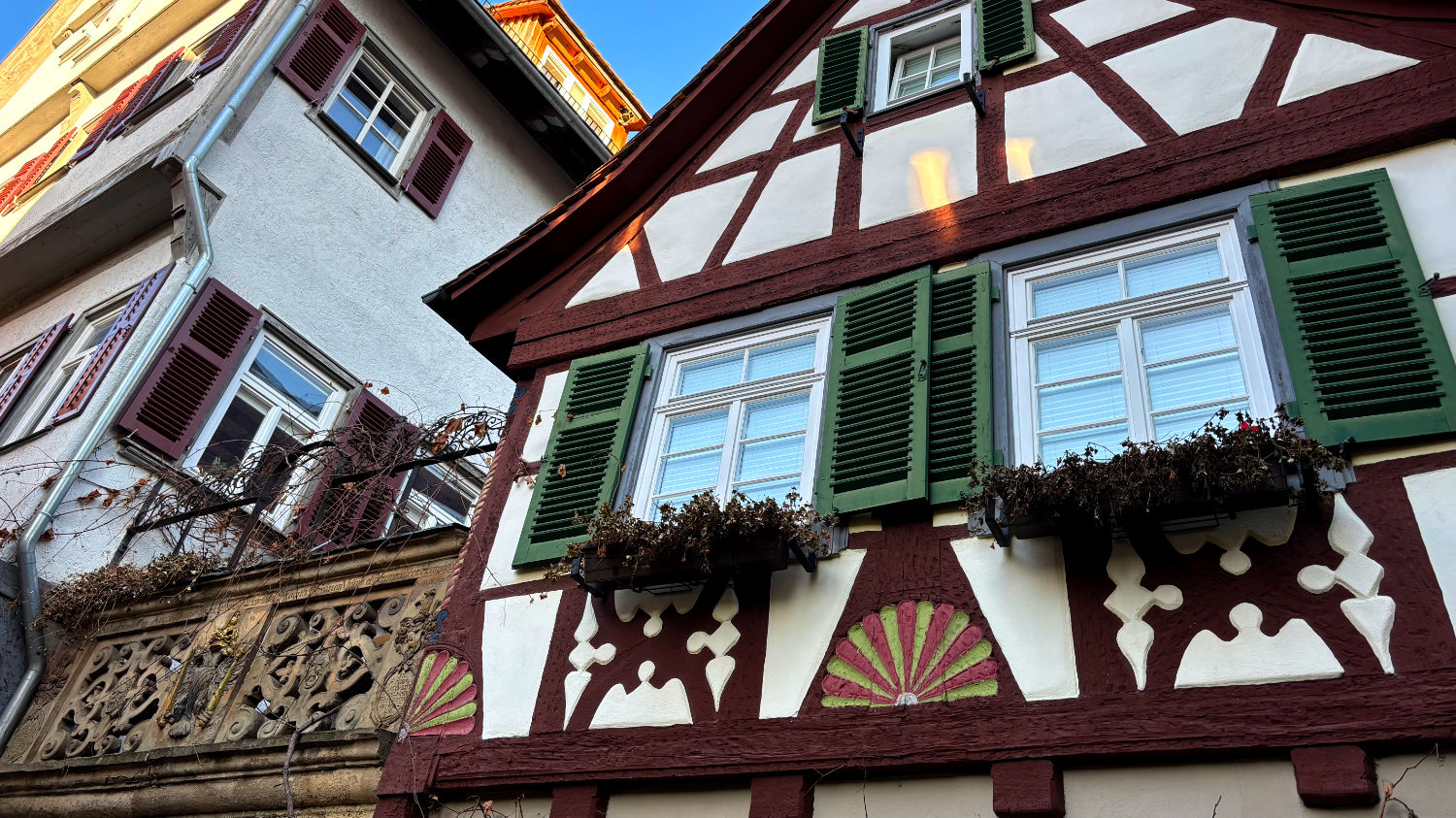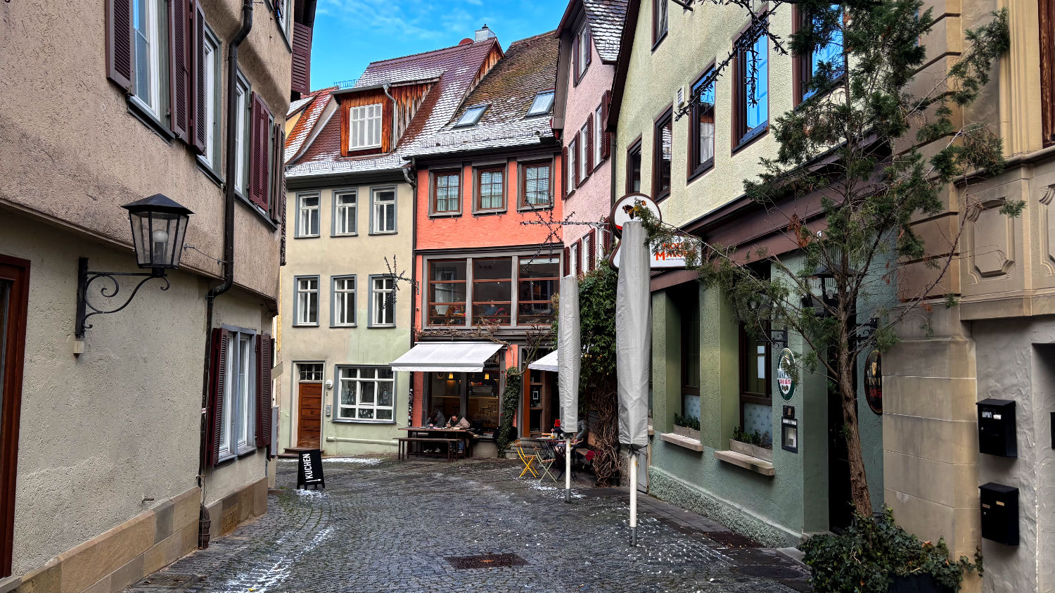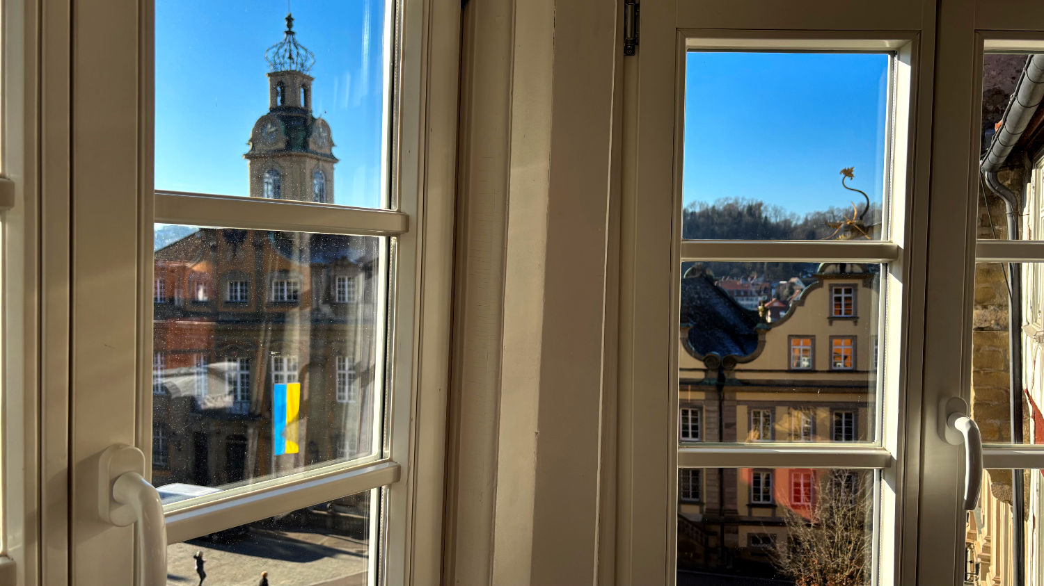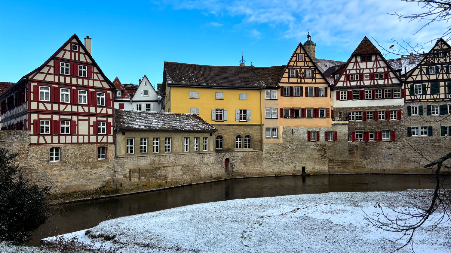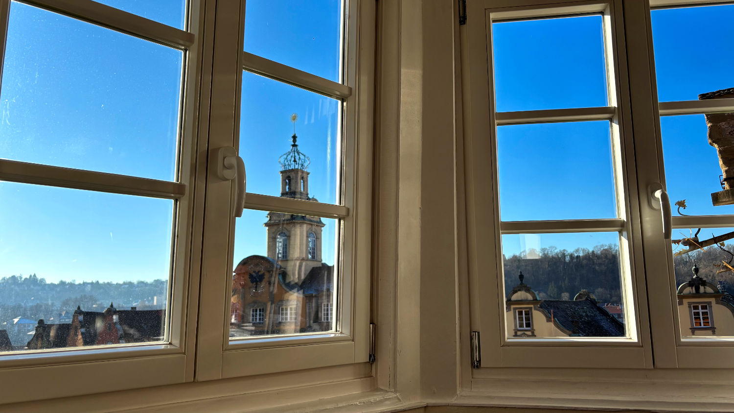 Am 28 Dezember machen wir uns also bei bestem Wetter auf den Weg nach Schwäbisch Hall. Wir reservieren uns ein Zimmer im Hotel Goldener Adler. Ricard empfahl uns das Hotel Hohenlohe, ein ebenso schönes wie teures Hotel – zumindest im für uns in Frage kommenden Zeitraum. 91€ pro Person/pro Nacht fanden wir etwas zu heftig, zumal wir das im Preis enthaltene Thermalbad wohl eh nicht hätten besuchen können. Wie sich bei unserer Ankunft herausstellte, war das Hotel Goldener Adler eine gute Alternative. Wir bekommen ein Zimmer mit Erker und Blick auf den schönen Marktplatz von Schwäbisch Hall. 😃 Für 95€ + 10€ Parken pro Zimmer/Nacht kann man sich nicht beschweren.