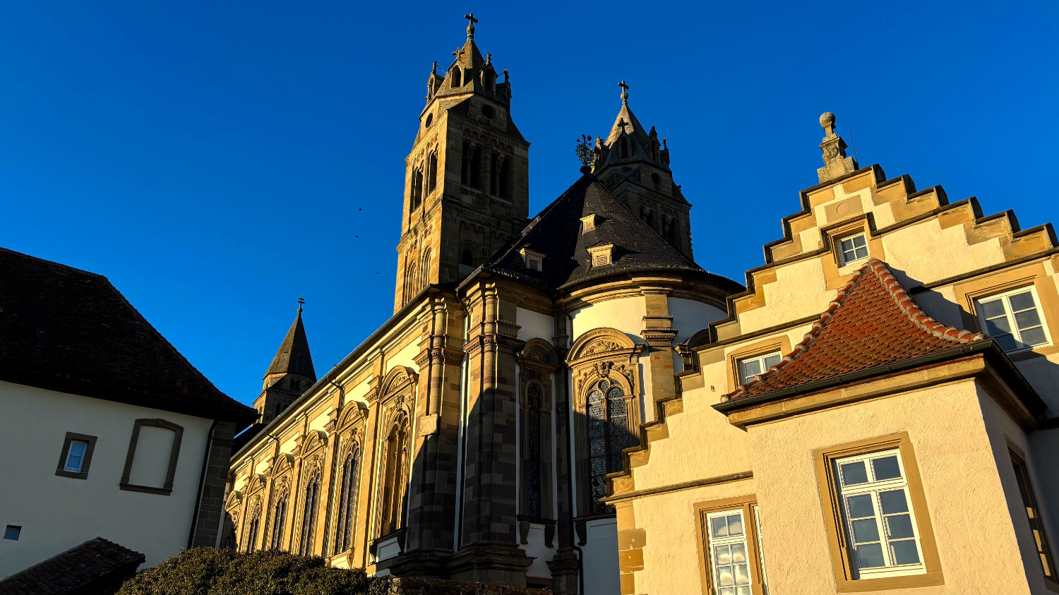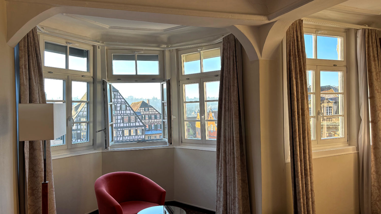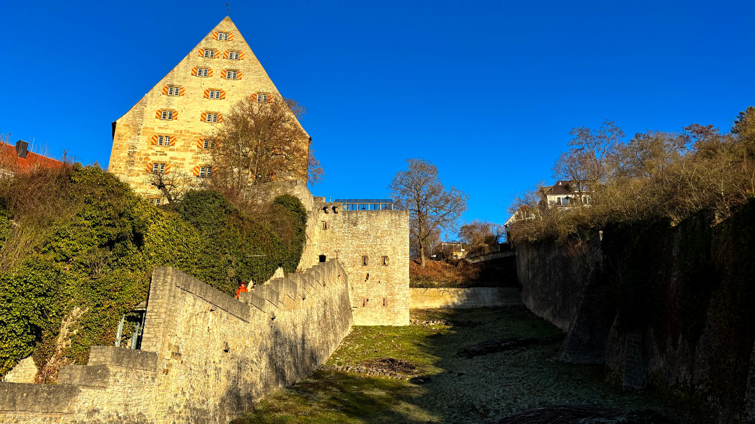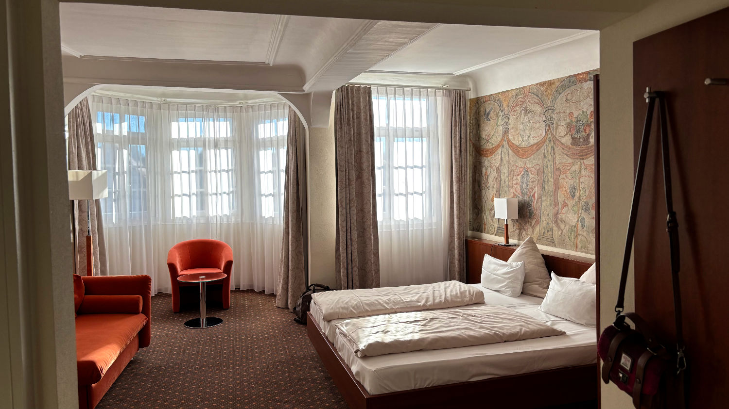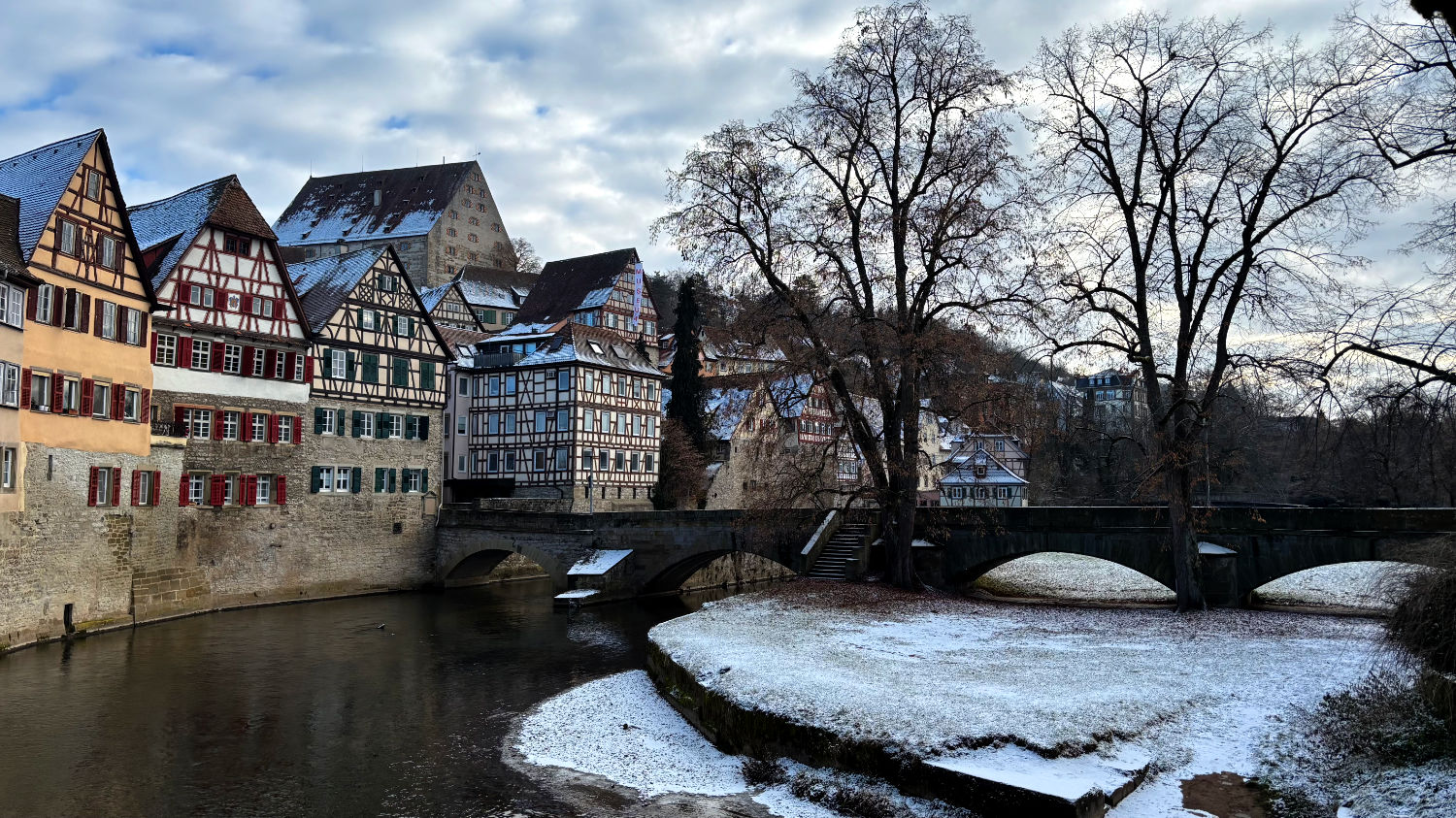 Am 28 Dezember machen wir uns also bei bestem Wetter auf den Weg nach Schwäbisch Hall. Wir reservieren uns ein Zimmer im Hotel Goldener Adler. Ricard empfahl uns das Hotel Hohenlohe, ein ebenso schönes wie teures Hotel – zumindest im für uns in Frage kommenden Zeitraum. 91€ pro Person/pro Nacht fanden wir etwas zu heftig, zumal wir das im Preis enthaltene Thermalbad wohl eh nicht hätten besuchen können. Wie sich bei unserer Ankunft herausstellte, war das Hotel Goldener Adler eine gute Alternative. Wir bekommen ein Zimmer mit Erker und Blick auf den schönen Marktplatz von Schwäbisch Hall. 😃 Für 95€ + 10€ Parken pro Zimmer/Nacht kann man sich nicht beschweren.