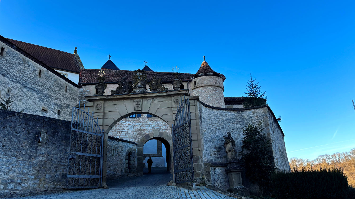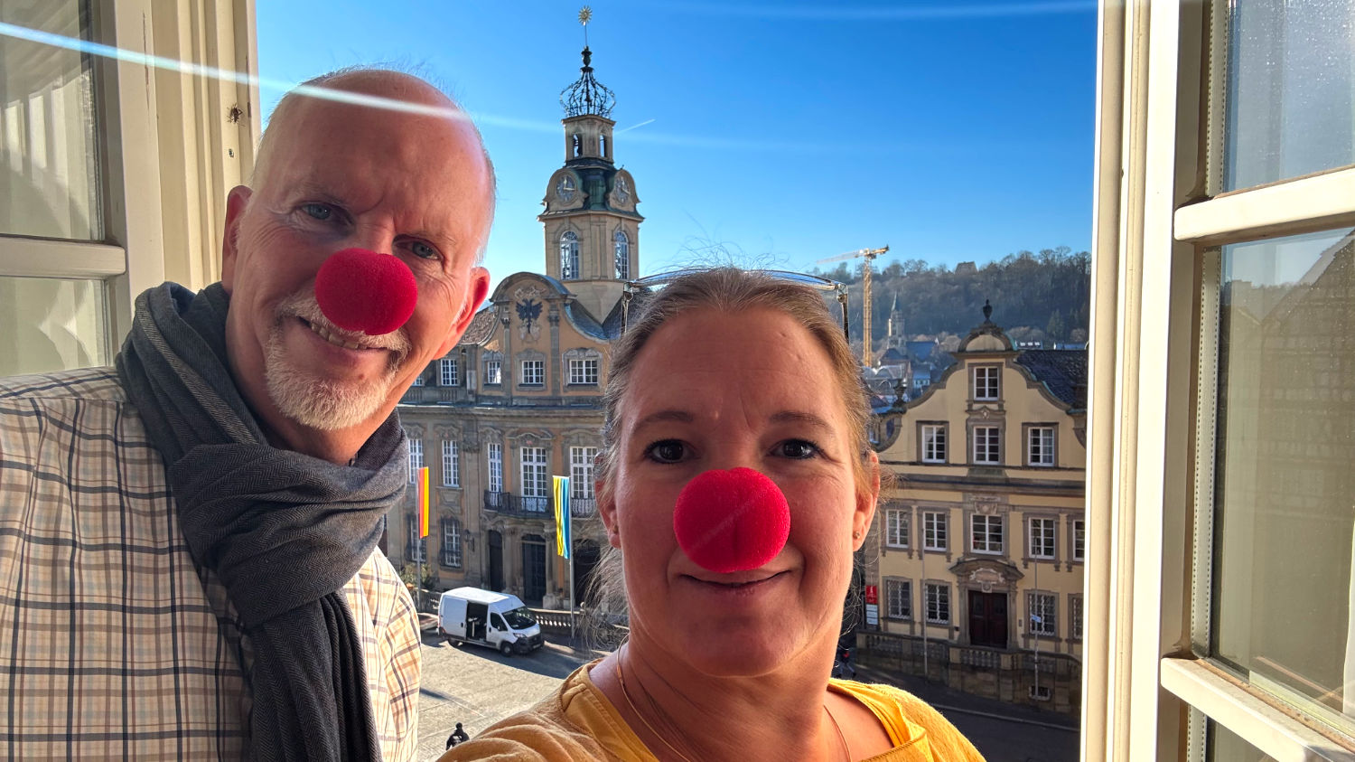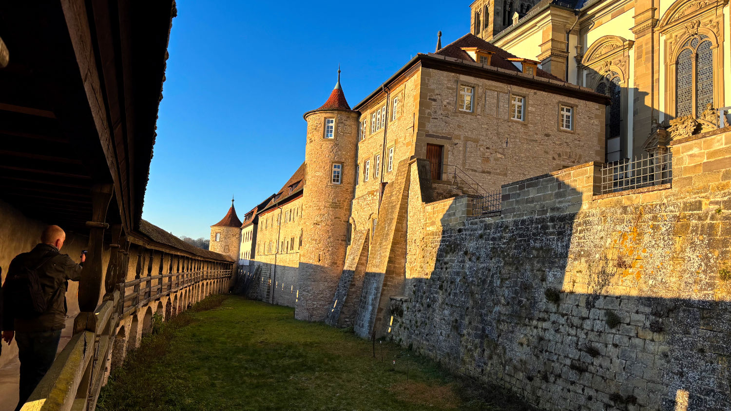 Am zweiten Tag treffen wir uns mit Ricard im neben unserem Hotel gelegenen Café. Wir machen eine schöne Sightseeing-Tour und besuchen das sehenswerte Kloster Großcomburg, den 510 Meter hohen Einkorn, einen Hügel mit schöner Aussicht, einem vielversprechend aussehenden Restaurant mit Biergarten, wo wir bei einem unserer nächsten Besuche sicher auch mal das ein oder andere Kaltgetränk zu uns nehmen werden und die Wallfahrtskirche Einkorn mit ihrem Aussichtsturm. Am Ende des Tages wird sich die große Pappnase wundern, warum er sich – obwohl er auf dem Weg nach Ingolstadt schon mehrfach durch Schwäbisch Hall gefahren ist – noch nie die Zeit genommen hat, das schöne Örtchen näher zu erkunden.