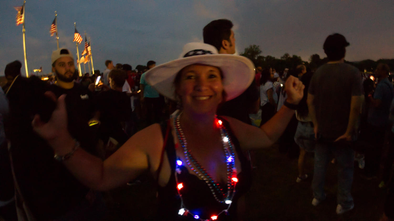 Im Anschluss zogen wir zum nahegelegenen Washington Monument, wo wir direkt am Monument, an dem großen Lüftungsgitter an der Westseite, einen Platz auf der Wiese, mit Blick in Richtung Lincoln Monument und Abschussplatz des Feuerwerks ergattern. Eine Frage beschäftigt die Große Pappnase bis heute: Wofür zur Hölle sind die Lüftungsgitter? Eine U-Bahn oder Straße verläuft dort unter der Erde nicht. Was ist dort unten?