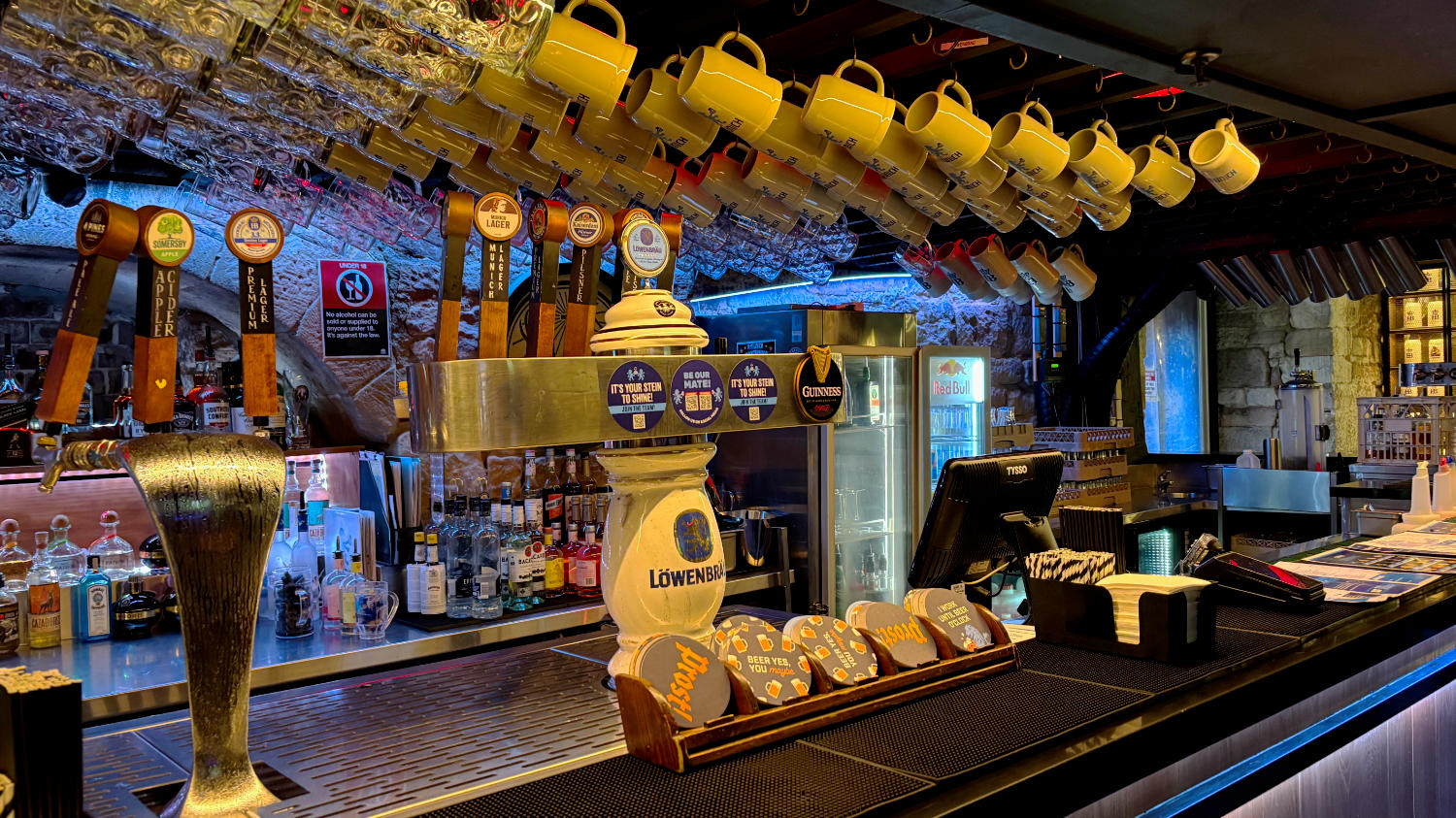 The Rocks ist das historische Stadtviertel zwischen dem Hafen Circular Quay und der Oper und der Harbour Bridge. Ein schönes Viertel mit engen Gassen und urigen Restaurants. Nicht ganz so urig und eigentlich ein Schandfleck fürs Viertel ist das Munich Brauhaus 😅. So ein Zirkus-Restaurant mit seiner Musik-Außenbeschallung, die zwischen bayerischem Ufftata und modernem deutschen Schlager wechselt, passt so gar nicht in die Gegend. Wir gehen trotzdem hin. Wir wollen das Unglück näher betrachten. Im Eingangsbereich werden wir vom „Pförtner“ angesprochen und gefragt, ob wir etwas essen oder trinken möchten und wenn ja, wo wir gerne Platz nehmen würden. Wir erklären dem „Pförtner“, dass wir erstaunt sind und mit so einem Schuppen ääääh Restaurant hier nicht gerechnet hätten. Er fragt uns, ob wir aus Deutschland kommen und holt seine junge Kollegin herbei. Die junge Kollegin ist blond, hat Zöpfe, trägt eine Art Dirndl, ist 18 Jahre alt und kommt aus Stuttgart. 100 Klischee-Punkte. 😂