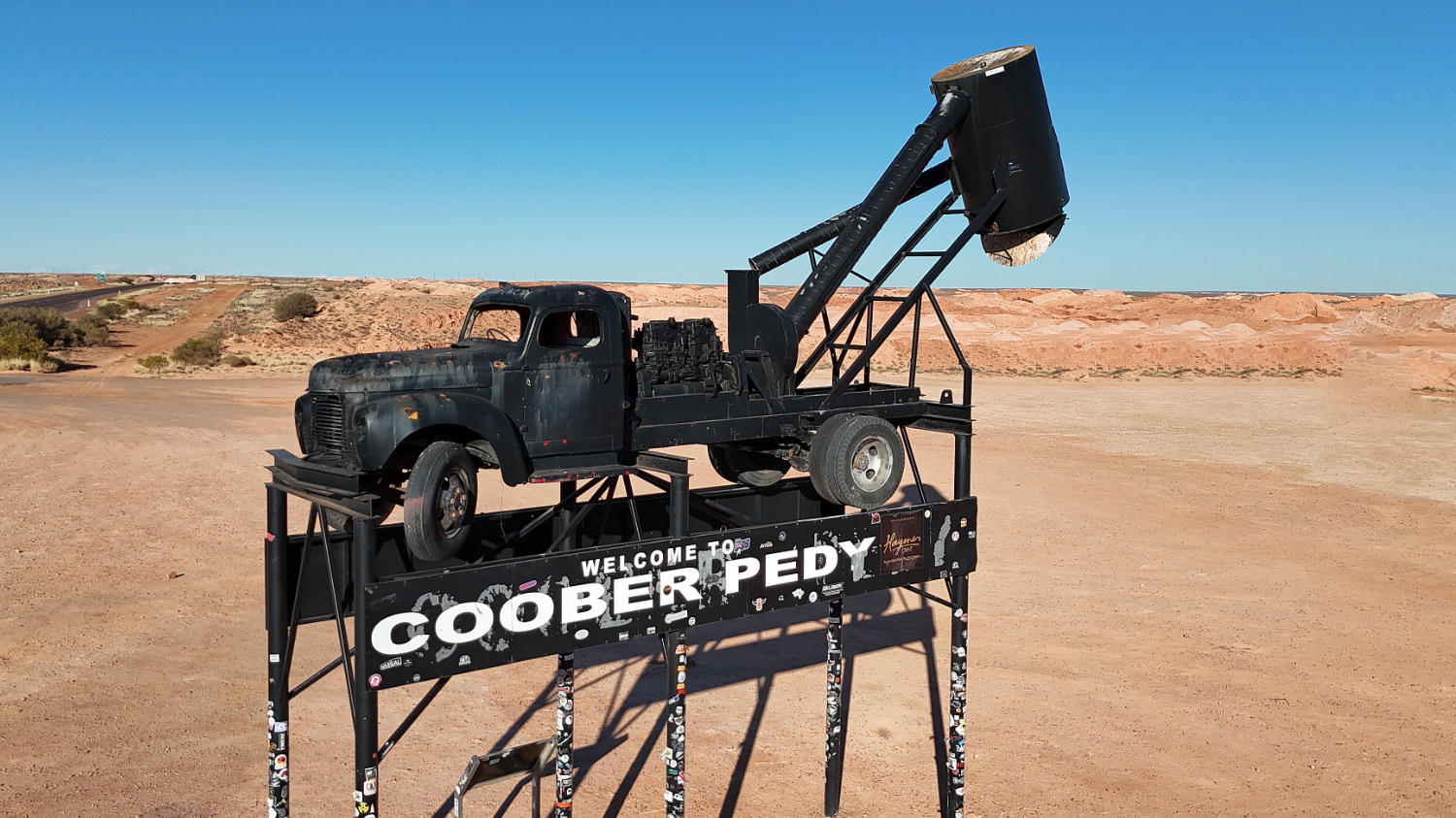 Gegen 16:00 Uhr sind wir am Ziel des heutigen Tages – der Minenort Coober Pedy. Hier hat es im Sommer gerne mal Temperaturen von über 50 Grad. Dehalb haben die Bewohner/Minenarbeiter vor der Erfindung der Klimaanlage ihre Wohnungen unter die Erde verlegt. Das kann man auch heute noch erleben, man braucht sich nur in eines der Hotels einmieten, welches unterirdische Zimmer anbietet. Das Desert Cave Hotel ist so ein Hotel. Heute sind alle Höhlenzimmer schon belegt, aber wir buchen beim Einchecken für den Rückweg gleich eins. 😋