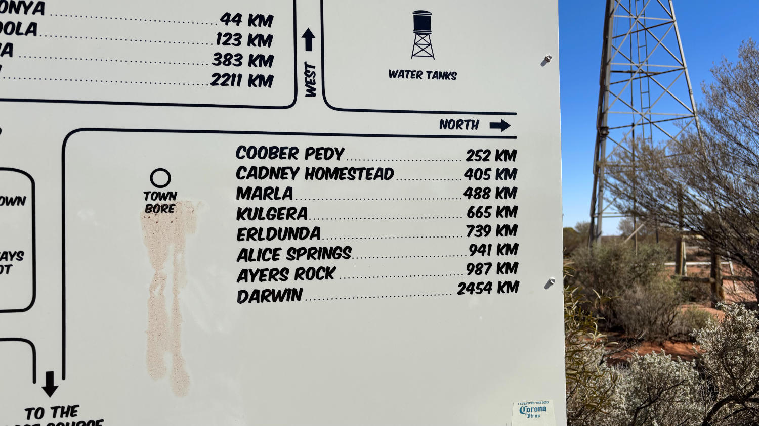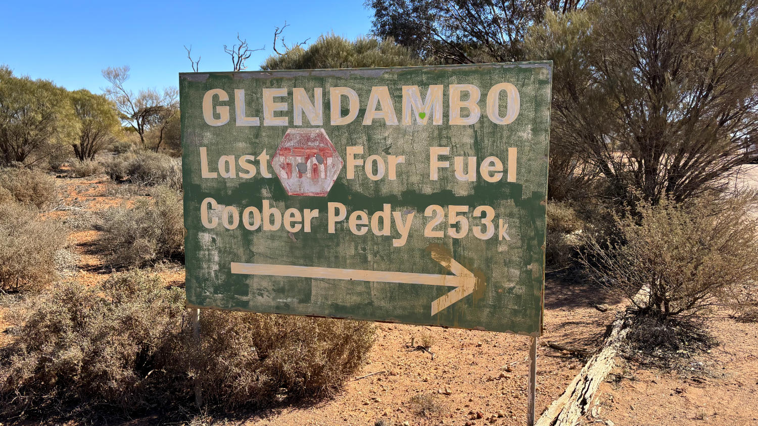 Man sollte bei einer Fahrt in die verlassene Landschaft des australischen Hinterlandes an jeder sich bietenden Möcglichkeit tanken, denn Tankstellen sind sehr rar. Vom Rastplatz Glendambo, wo wir tanken und unser Roadtrip-Frühstück zu uns nehmen, zur nächsten Tankstelle, sind es schlappe 253 Kilometer! 😳