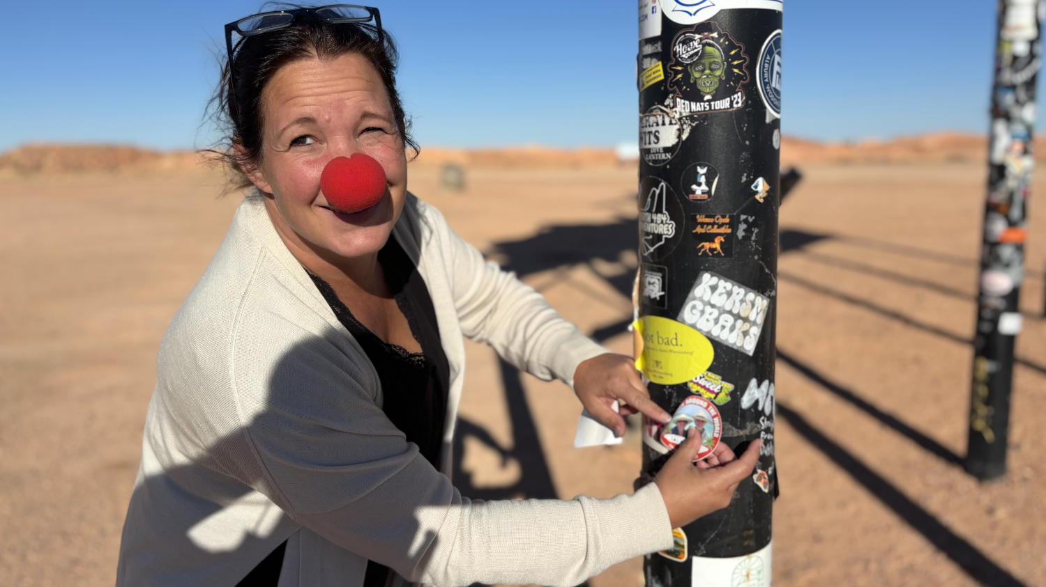 Leider liegt der Coober Pedy Hollywood-Style Schriftzug in einer Flugverbotszone, also packt die große Pappnase Drohnie 2.0 wieder ein und läuft schnell in den Opal-Schmuckladen, um das Schlimmste zu verhindern.