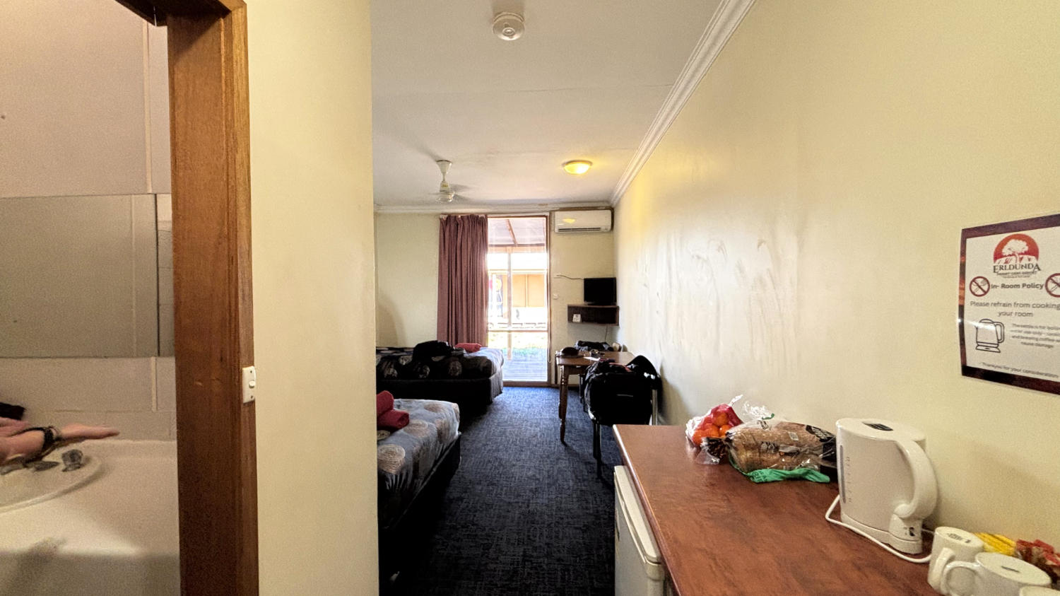 Das Motel selbst kann man getrost vergessen. Es ist zwar alles sauber und ordentlich, aber in die Jahre gekommen und der Preis ist fürs Gebotene eine Dreistigkeit. Na ja, freie Marktwirtschaft halt. Solange es bezahlt wird…