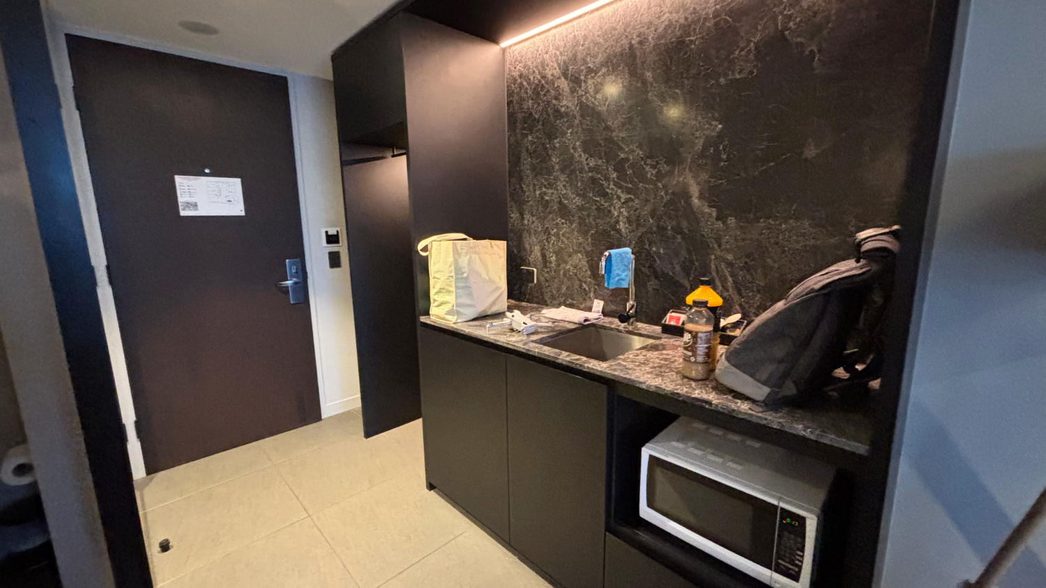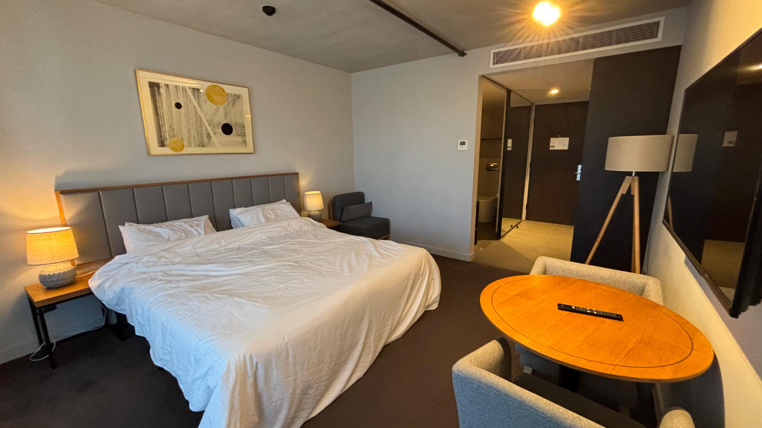 Wir übernachten im Clarion Apartments South Melbourne, einer sehr schönen Apartmentanlage nahe dem Albert Park, dem den meisten wegen der berühmten Formel 1 – Rennstrecke bekannt sein dürfte. Wir sind sehr zufrieden mit unserem Zimmer und in der eigenen Tiefgarage gibt es sogar einen Stellplatz fürs Auto – super. Das lässt das im Preis enthaltene „Frühstück“ glatt vergessen. 😅