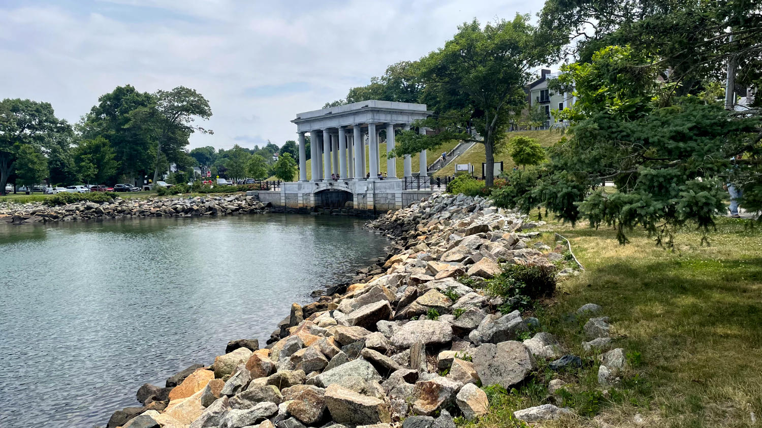 Uns wird’s immer schwerer ums Herz. Der typische Blues, wenn ein USA- beziehungsweise Kanada-Roadtrip (😋) zu Ende geht. Schlimm. Deshalb genießen wir jede Sekunde und jeden Ausblick umso mehr. Nach dem Frühstück fahren wir Richtung Plymouth, genaugenommen zum berühmten „Plymouth Rock“. Er ist nicht nur bekannt als der Felsen, an dem die Pilgerväter von der Mayflower die neue Welt betraten, sondern auch als ein Beweis dafür, dass der Meeresspiegel nicht steigt, weil der Stein seit 1880 bzw. 1920 noch nicht unter Wasser liegt. 😄