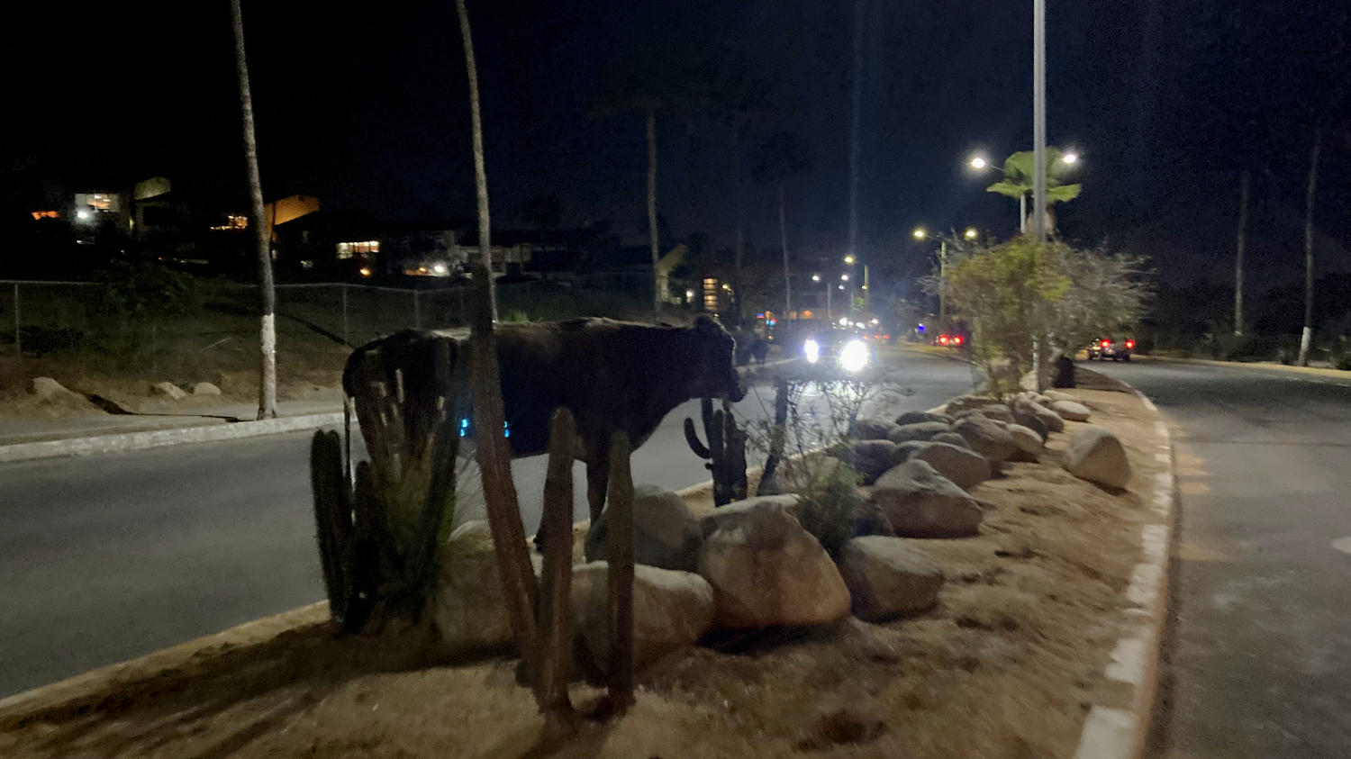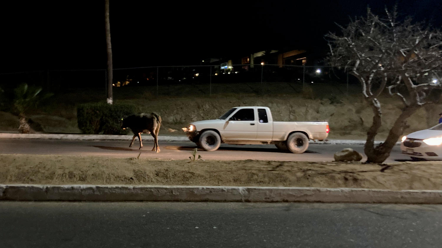 Es ist in Mexiko nicht ungewöhnlich, wenn mal hinter einer Straßen-Kuppe oder oder Kurve plötzlich ein Tier auf der Straße steht, aber Abends auf einer Straße mitten im Ort ist schon lustig. Aber hey – warum sollten nicht auch Kühe ausgehen dürfen?