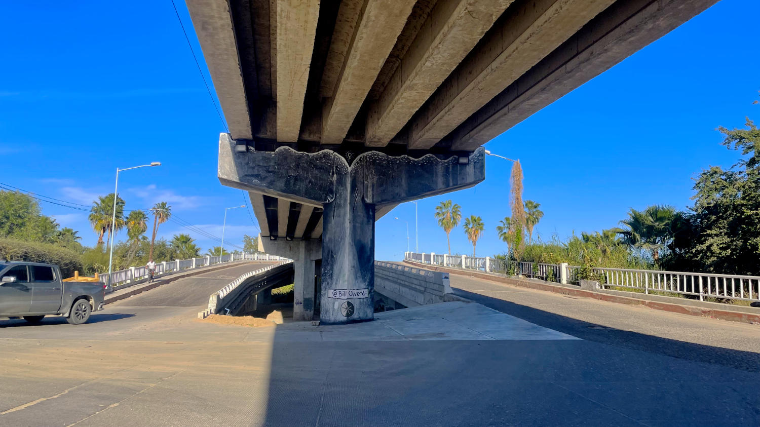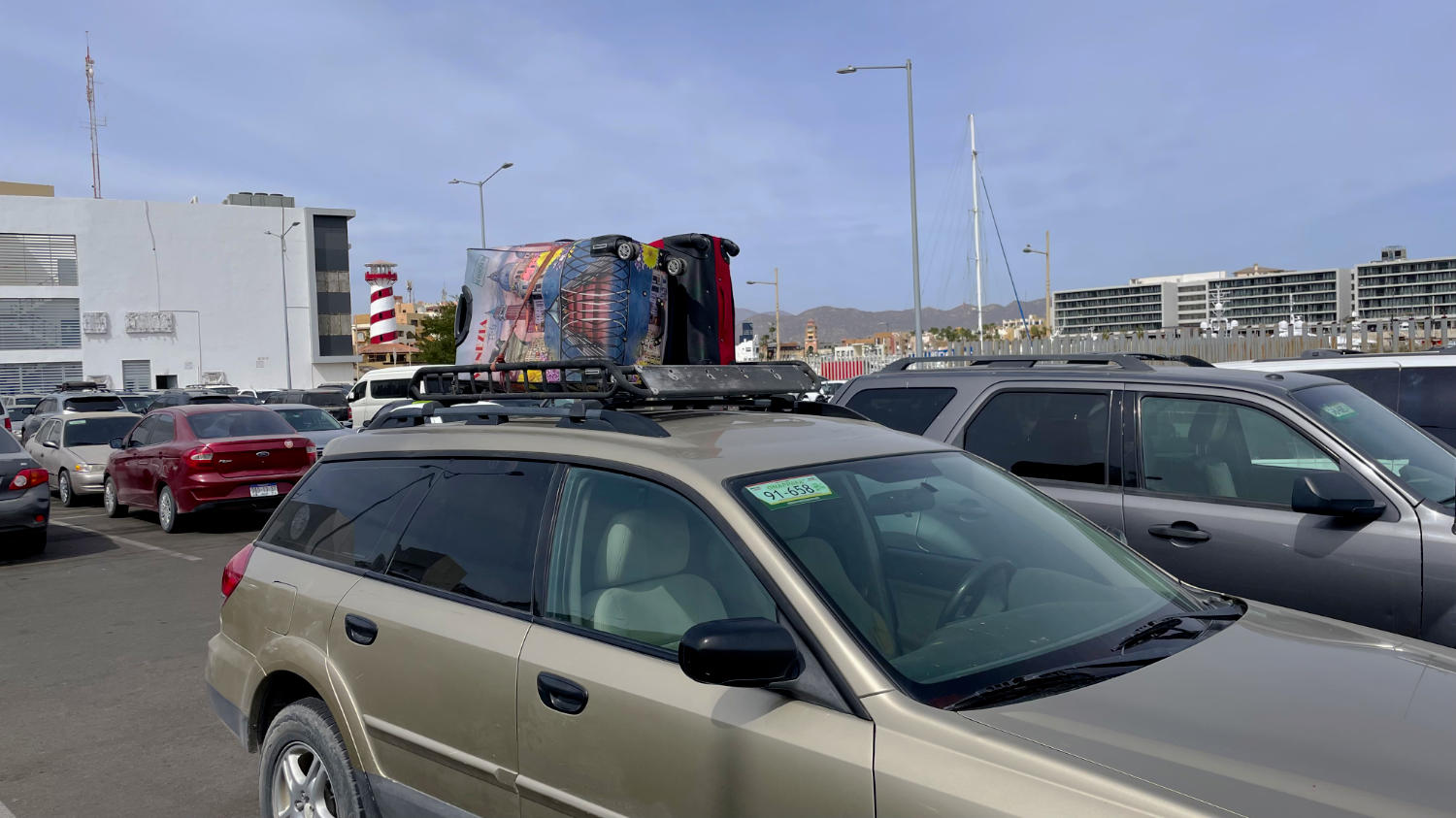 Auf dem Parkplatz seht nicht weit von uns ein PKW. Das ist auf einem Parkplatz nicht sonderlich wunderlich oder erwähnenswert, allerdings sind auf dem Dach dieses PKWs zwei Koffer geschnallt. Ohne Sicherung. Der Eigentümer ist auch nicht in der Nähe. Also entweder ist das eine riesige Koffer-Bombe, die Koffer sind leer, oder dieses Mexiko ist wesentlich ungefährlicher, als der typische Deutsche so denkt. 😋