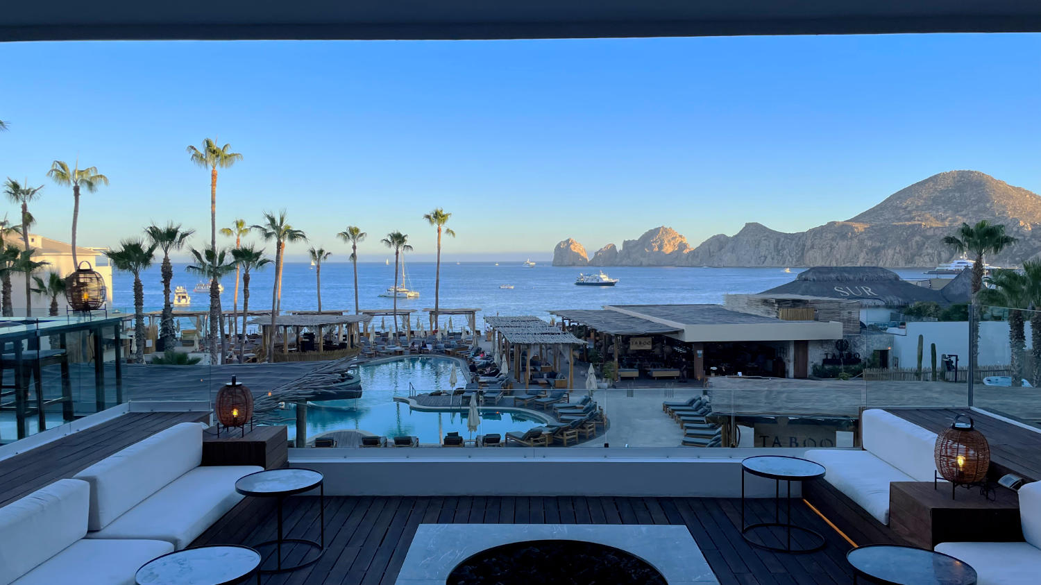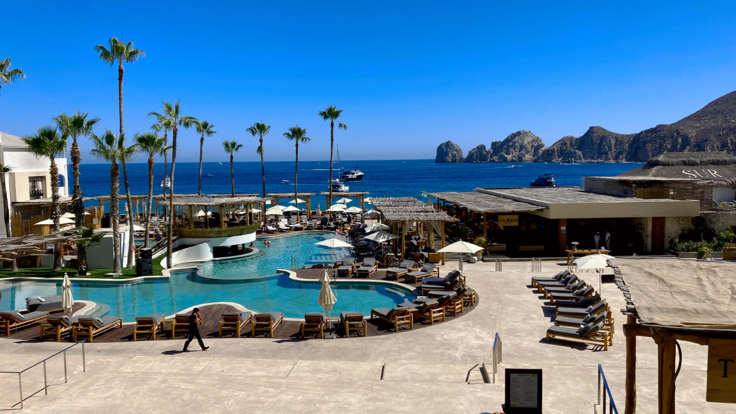 Der Beach Club befindet sich auf dem Hotel-Gelände des ME Cabo by Meliá und ist auch wirklich sehr schick – an sich nichts ungewöhnliches in Mexiko. Allerdings ist er auch recht teuer. Man zahlt 50 Euronen pro Person für einen Platz unten am Strand und darf dafür nicht an den Pool, oder 100 Euronen pro Person und darf an Pool und Strand. Dafür ist das Parken aber gratis. 😅