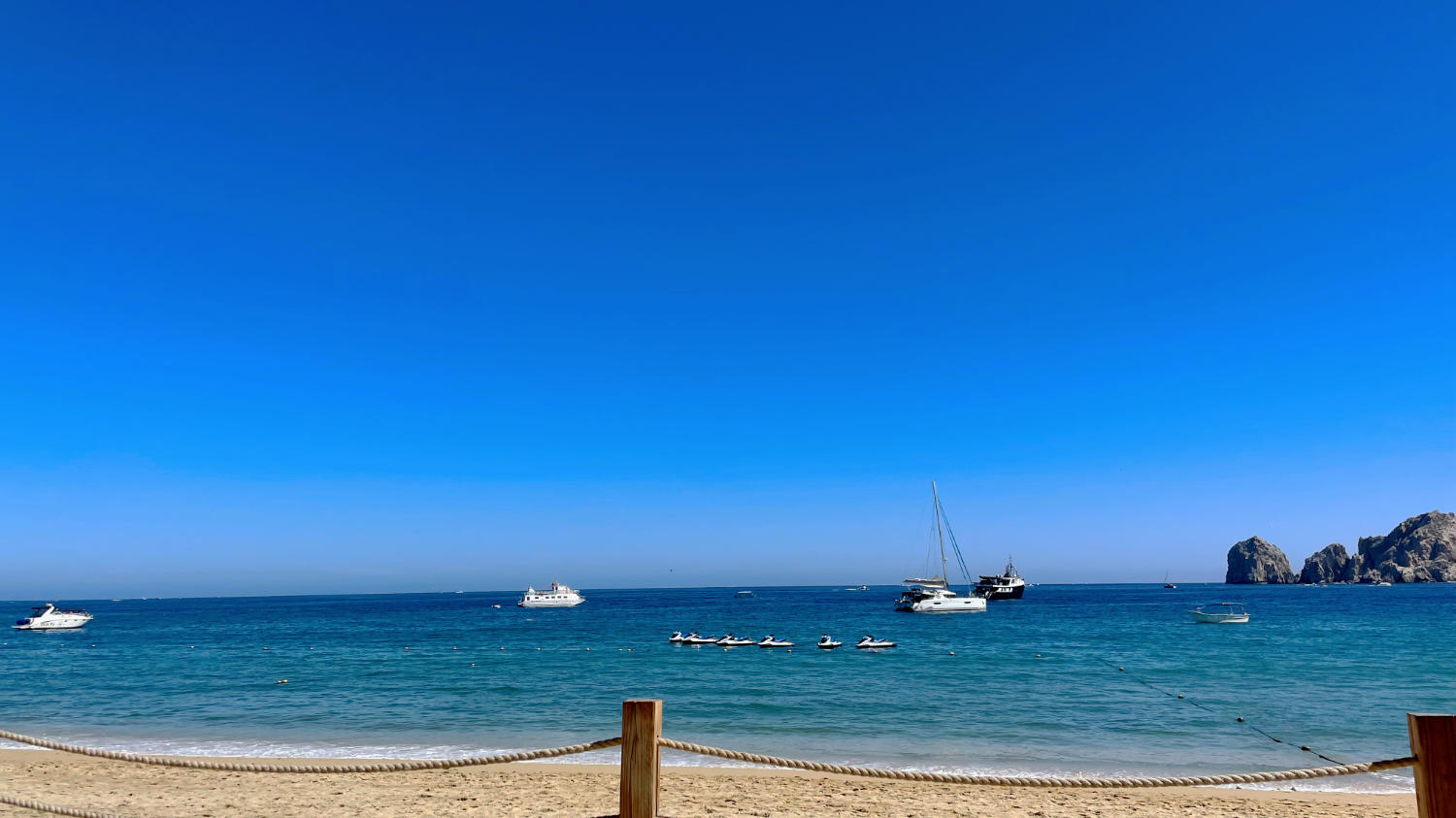 Unterm Strich gefällt uns der Beach Club sehr gut. Das Essen ist sehr gut und die Aussicht auf die Bucht vom Hafen von Cabo San Lucas mit seinen Felsen und den vor Anker liegenden Yachten hat was. Dafür ist man – zumindest auf den billigen Plätzen am Strand – quasi Freiwild für die Verkäufer. 😅 Immerhin reicht ein einfach: „No, muchas gracias“ und sie lassen uns in Ruhe. Das mögen wir an den Mexikanern, sie sind in der Regel wirklich höflich und rücksichtsvoll.