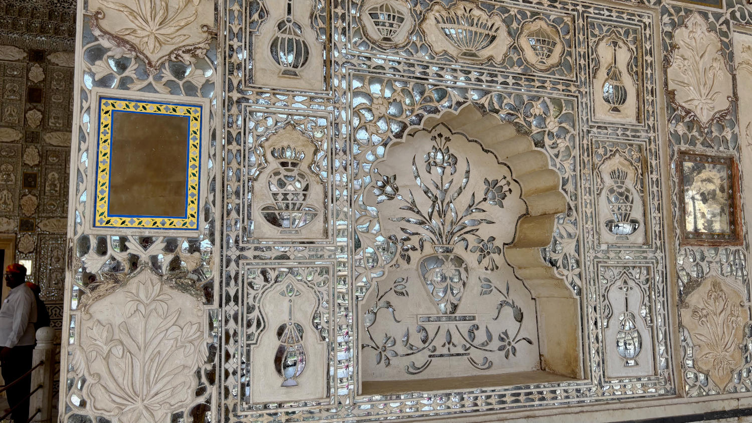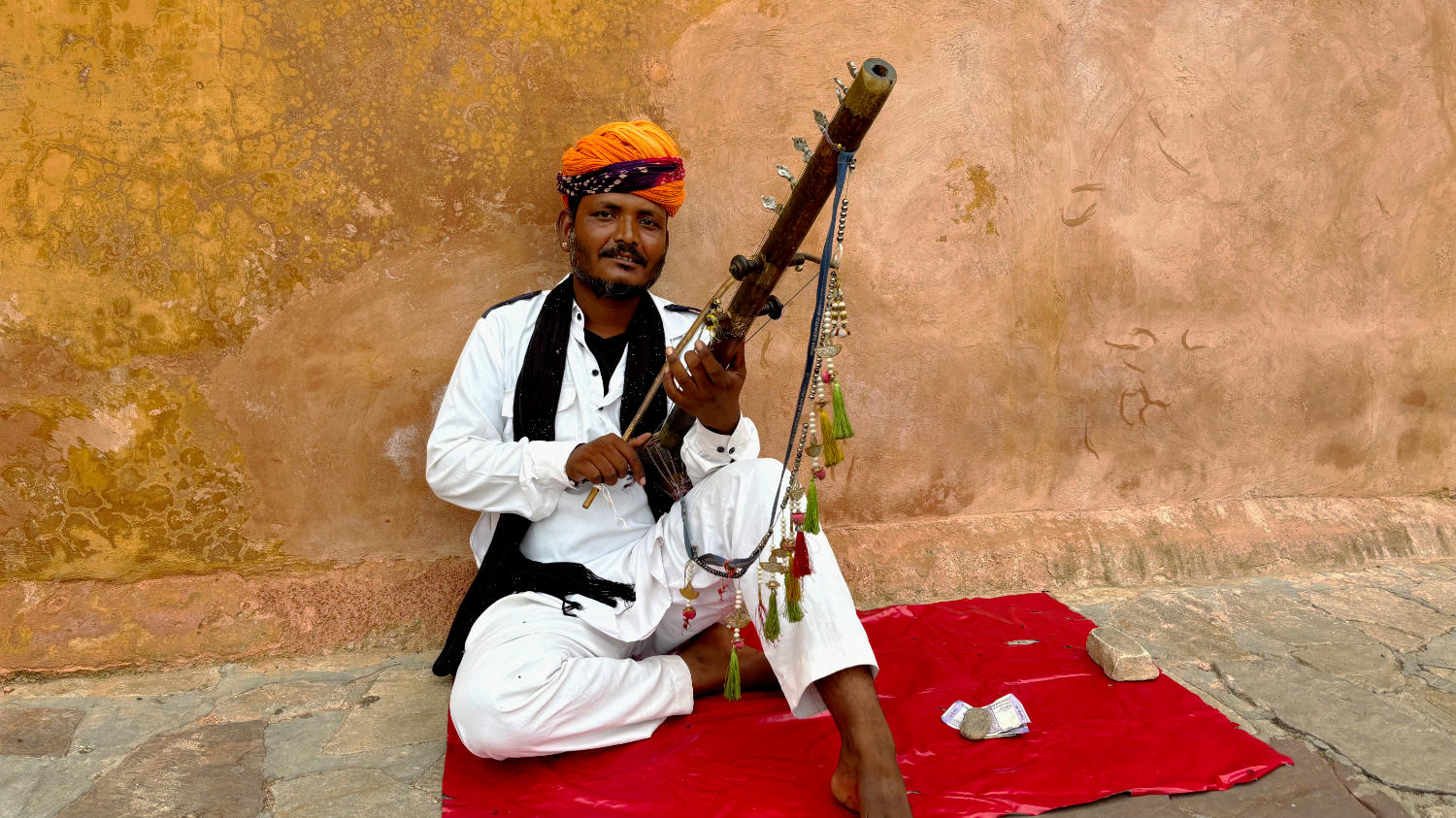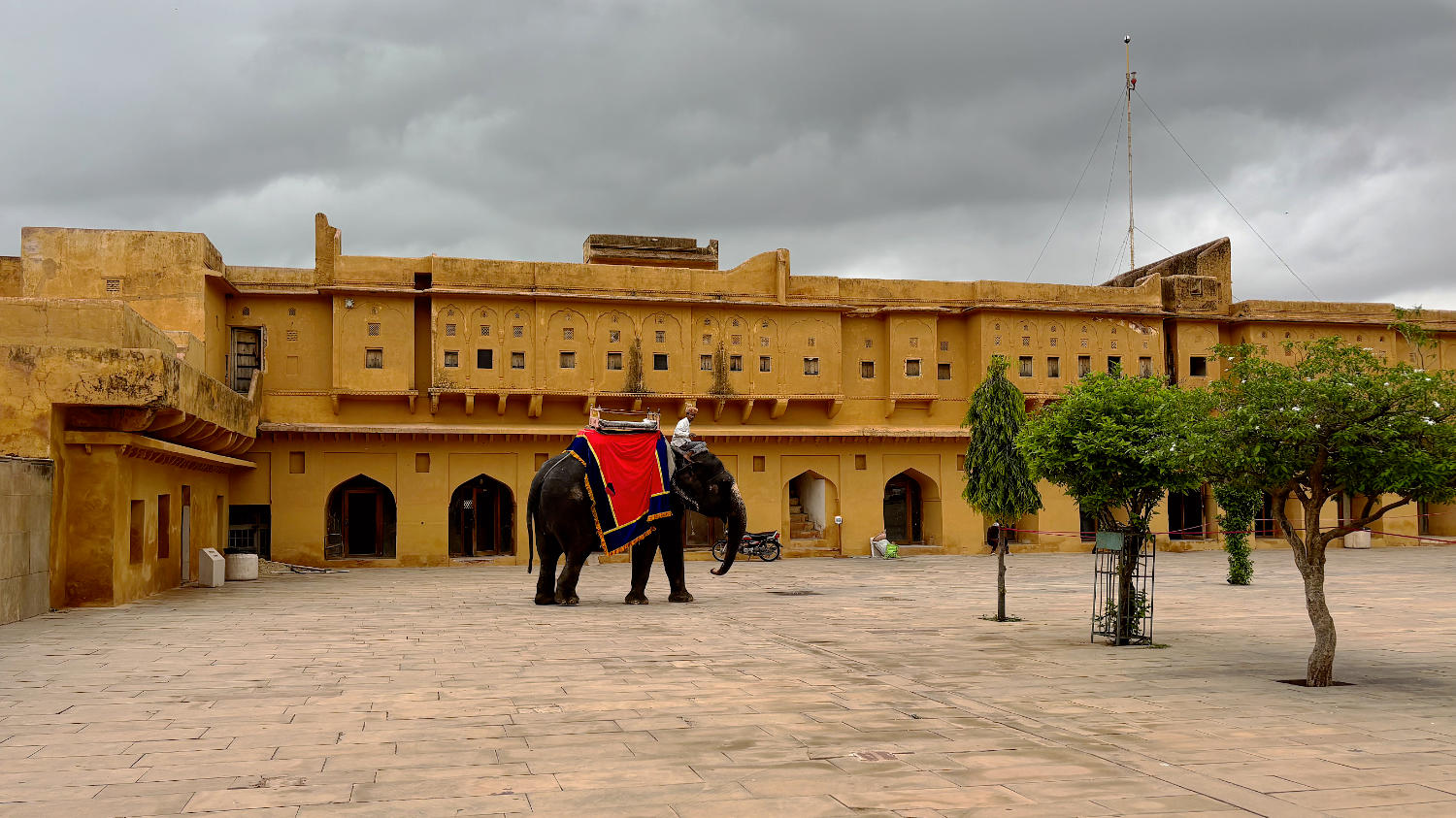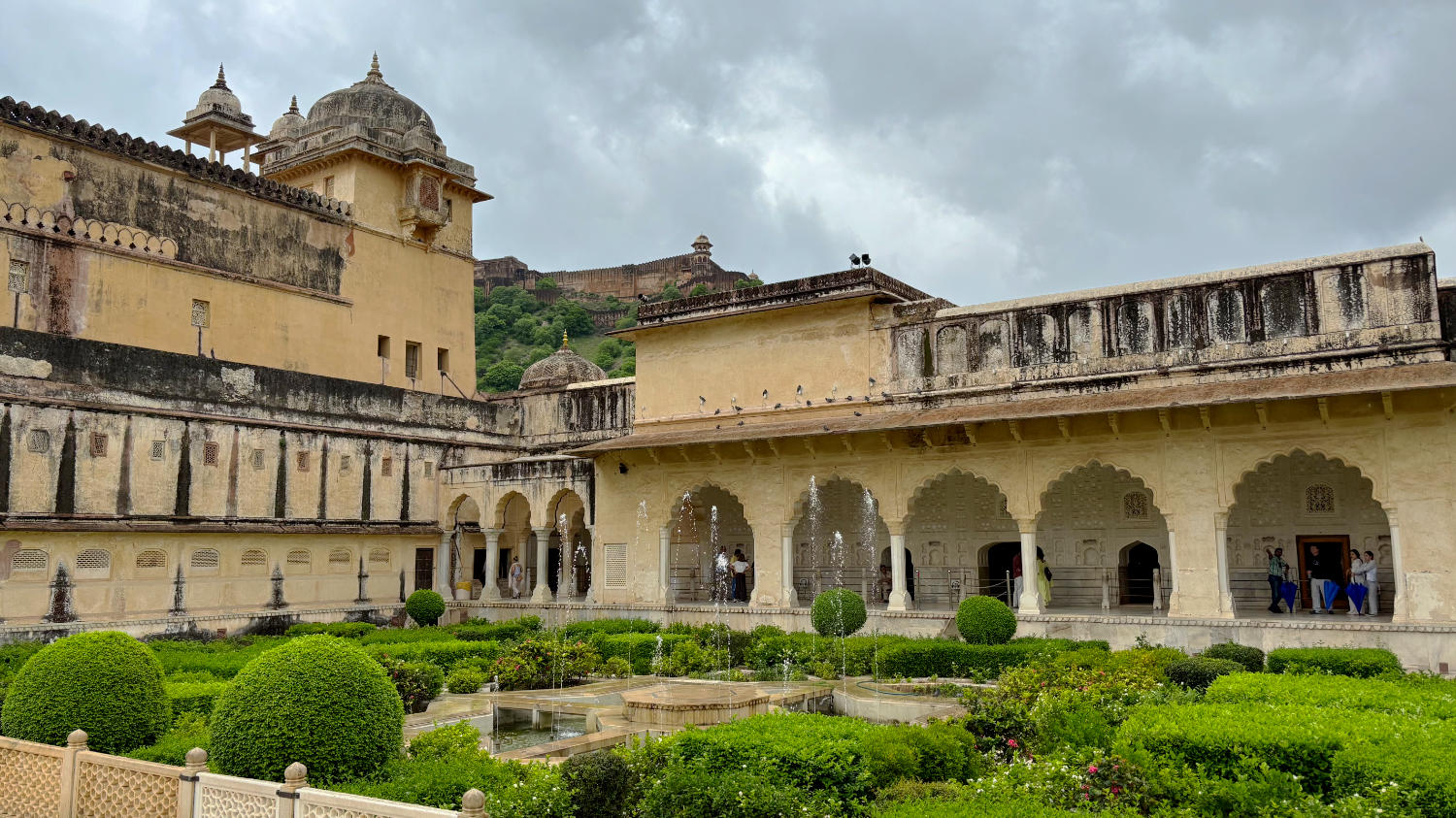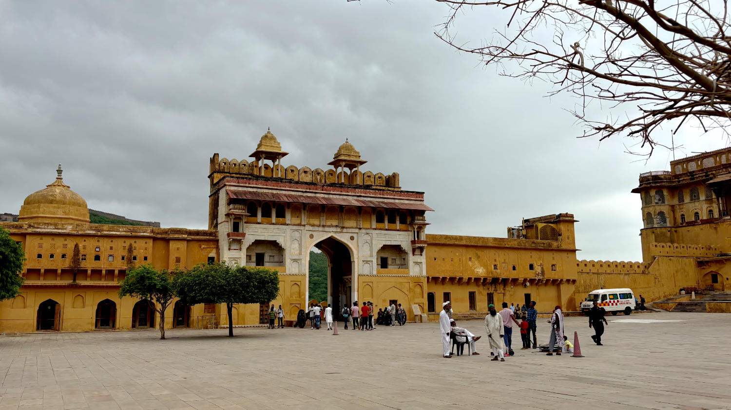 Um 9:00 Uhr holt uns Surendra, unser Fahrer vom Vortag ab. Unser Ziel gilt dem Fort Amber auf einem der Berge rund um Jaipur. Man kann das Fort auf drei Arten erreichen: Zu Fuß, mit dem Auto oder auf dem Rücken eines Elefanten. Wir bevorzugen das Auto, weil wir finden, dass Tiere heutzutage nicht mehr für so etwas Missbraucht werden sollten.