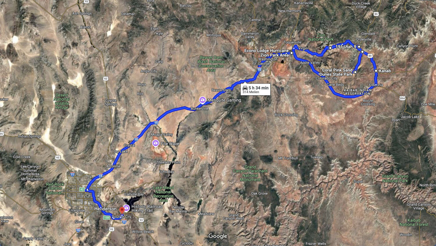 Im Motel 6 in Hurricane einen Pappnasen Sticker aufs Bild gepappt, vom Südtor zum Osttor nochmal durch den Zion Nationalpark gefahren, den Coral Pink Sand Dunes State Park von außen angeschaut, ein bisschen durch Kanab geschlendert und im Iron Horse Restaurant einen leckeren Burger gegessen, danach 225 Meilen (362 Kilometer) nach Boulder gefahren und in der Boulder Dam Brewing Co. bei Live Musik KEIN Bier getrunken. Das wars für diesen Tag.