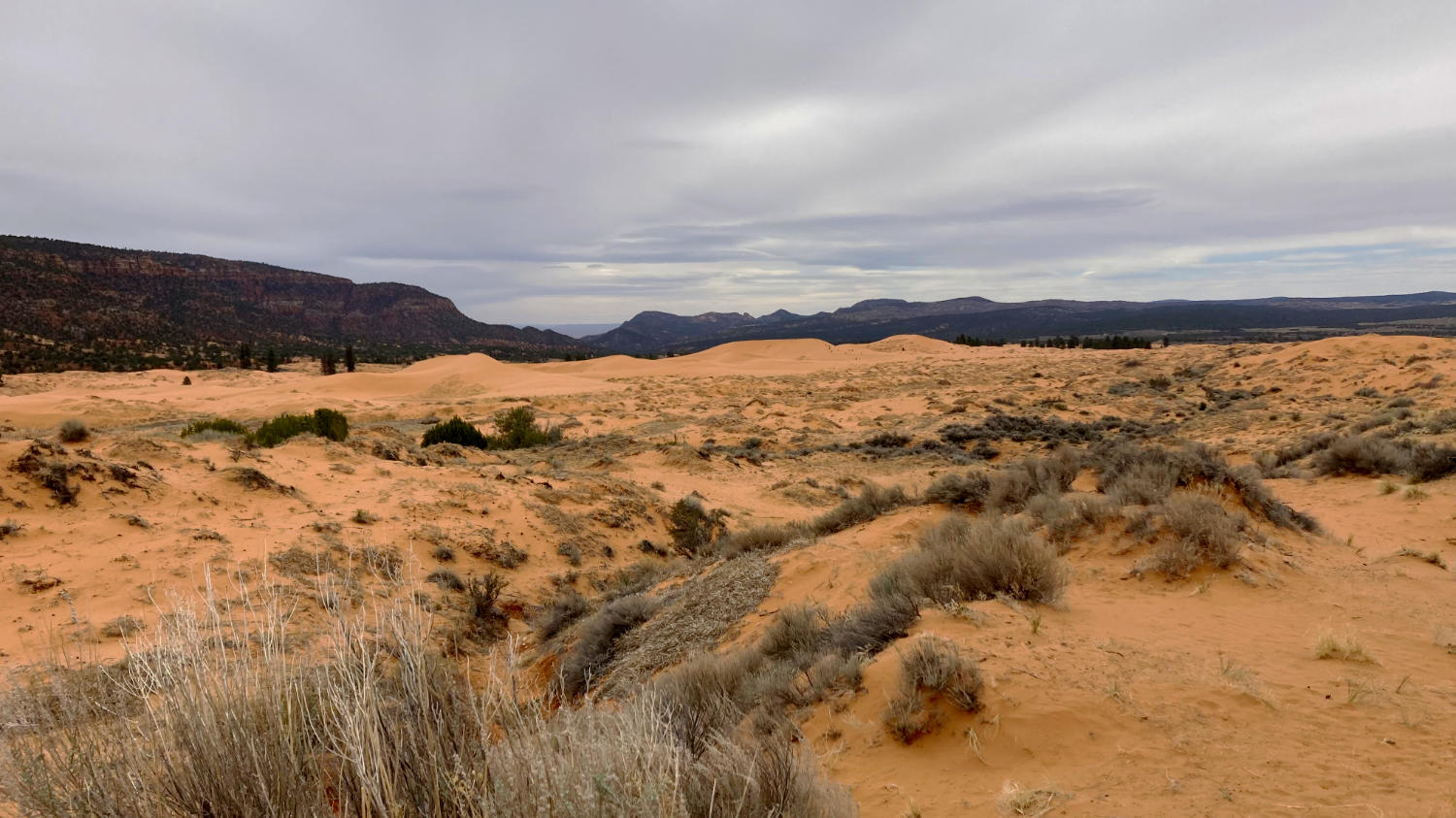Vom Ost-Eingang des Zion Nationalparks fahren wir ab Mont Carmel über den Highway 89 Richtung Kanab. Auf der rechten Seite steht irgendwann ein Schild mit der Aufschrift „Coral Pink Sand Dunes State Park“. „Na ja“ denken wir uns, „warum nicht?“ und biegen ab. Vielleicht entdecken wir ja was Neues, was noch nicht jeder irgendwie kennt. Und in der Tat, die Coral Pink Sand Dunes sehen wirklich gut und spannend aus – vorallem, weil man dort wohl durch die Dünen brettern kann, aber da wir vor ein paar Tagen ja schon in den Dünen von White Sands waren, ist uns die Erkundung von Kanab heute wichtiger. Die 15 Dollar Eintritt machen uns die Entscheidung leichter. Beim nächsten mal gönnen wir uns den Spaß aber.