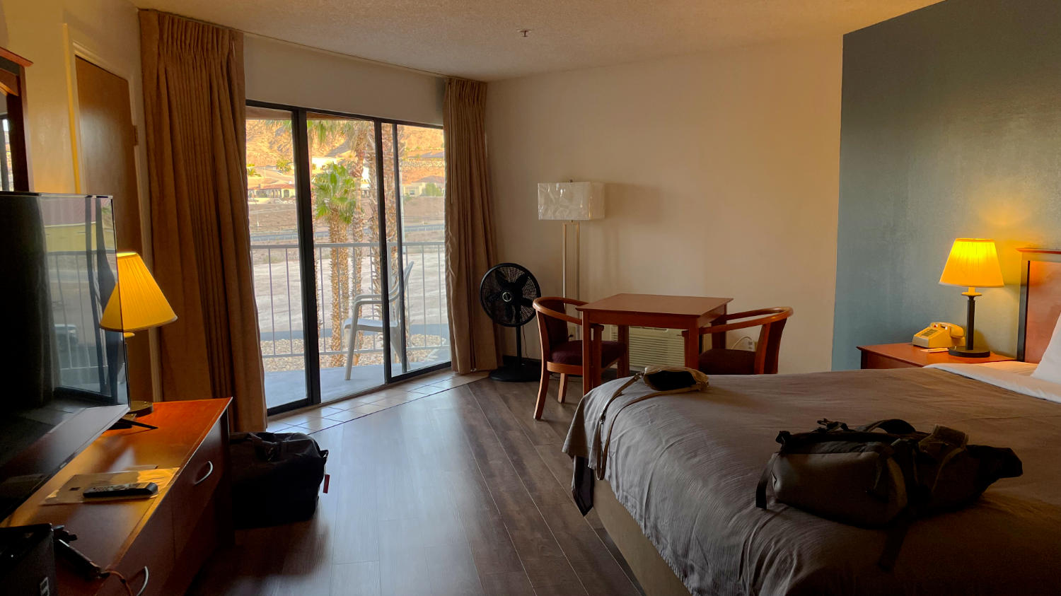 Auch diesmal gefällt uns das Lake Mead Inn sehr gut. Wir haben diesmal zwar kein Zimmer mit direktem Blick auf den See bekommen, aber der Balkon, ein großer, mindestens 50 Zoll messender Fernseher, das große Zimmer und das bequeme Bett entschädigen uns für die fehlende See-Aussicht. Das Lake Mead Inn ist ein glatter Motel-Tipp für den Raum Las Vegas.