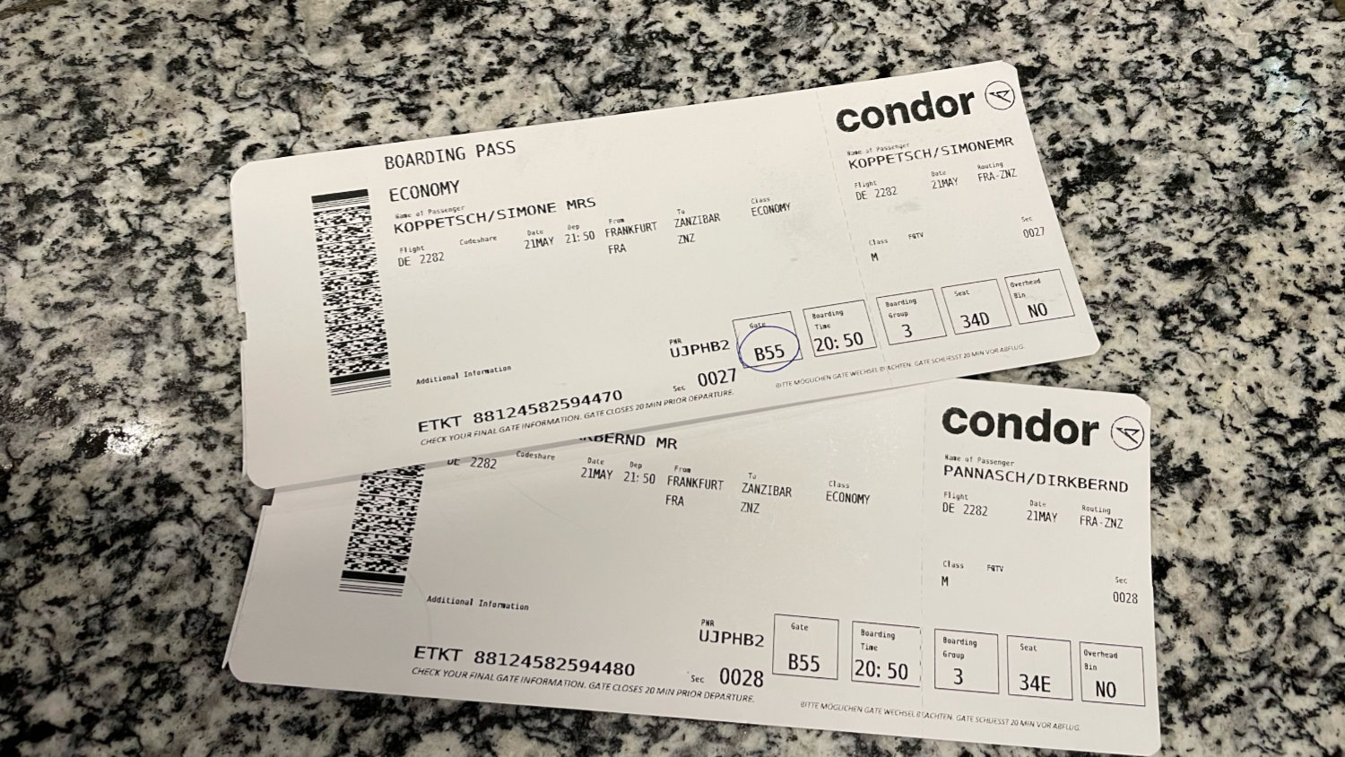 Am 21. Mai 2023, mit dem CONDOR Flug DE2282 und der Startzeit 21:50 Uhr sollte unser sehr kurzentschlossener Spontantrip nach Sansibar mit einer Zwischenlandung in Mombasa/Kenia starten. Wenn man bedenkt, dass wir ursprünglich an einen Kurztrip nach Marrakesch, Ägypten oder Göreme dachten, wirkt Sansibar schon irgendwie verrückt. Aber hey, es hat sich sowas von gelohnt! 😍