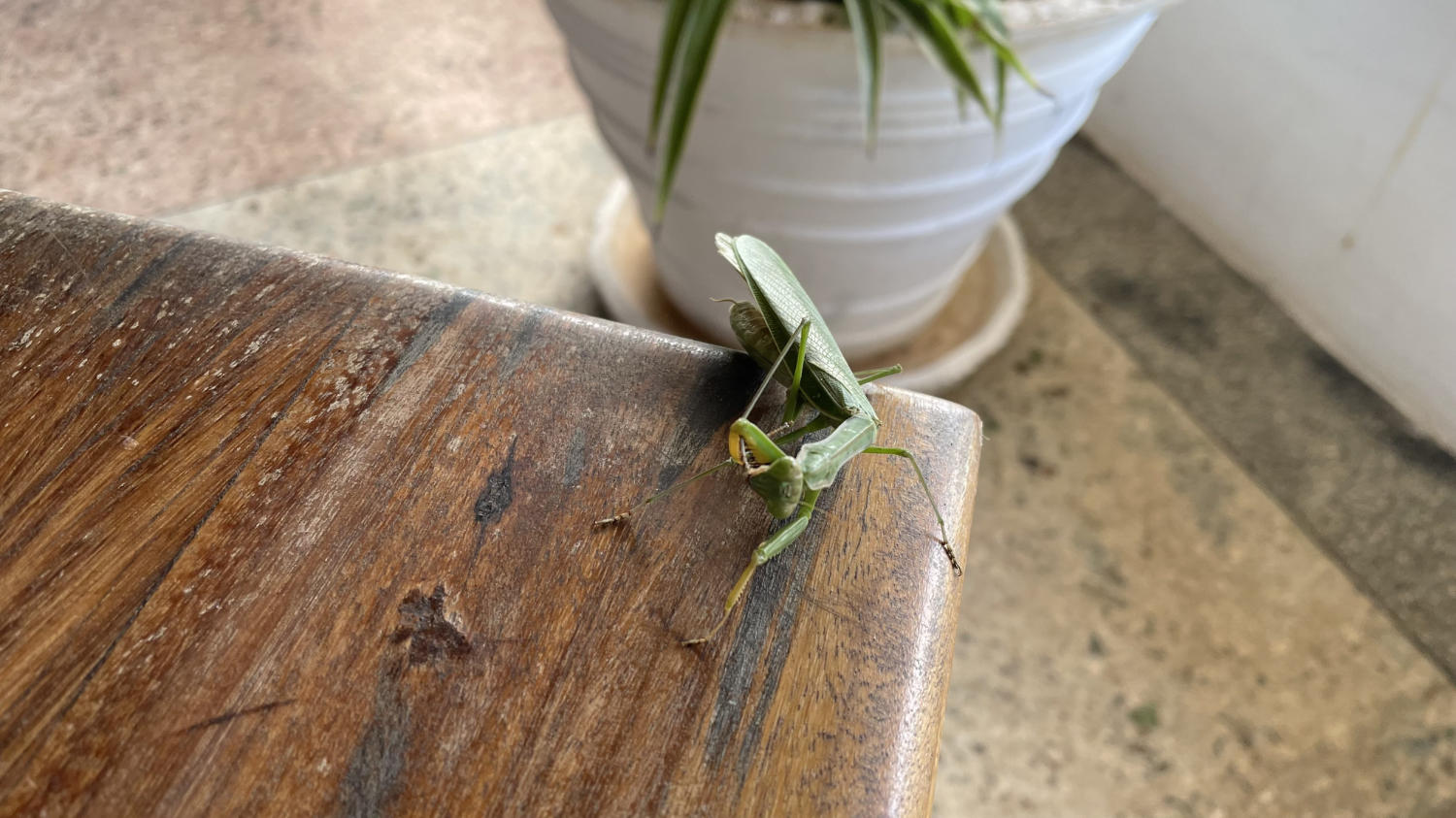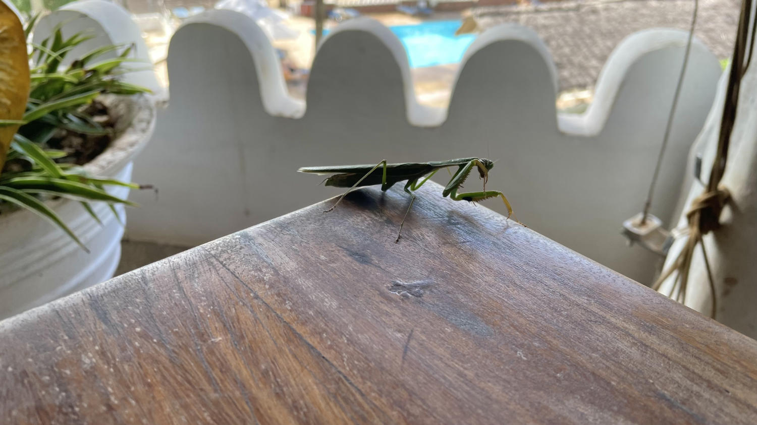 Der Tag beginnt natürlich erstmal mit einem leckeren Frühstück und einer traumhaften Aussicht. Auf dem Nachbartisch entdeckte Simone ein „Blatt“, welches sich bei näherer Betrachtung als Gottesanbeterin entpuppte. Das war neben Gordon, dem Badezimmer-Gecko aber das einzige Krabbeltier, das uns im Hotel begegnete.