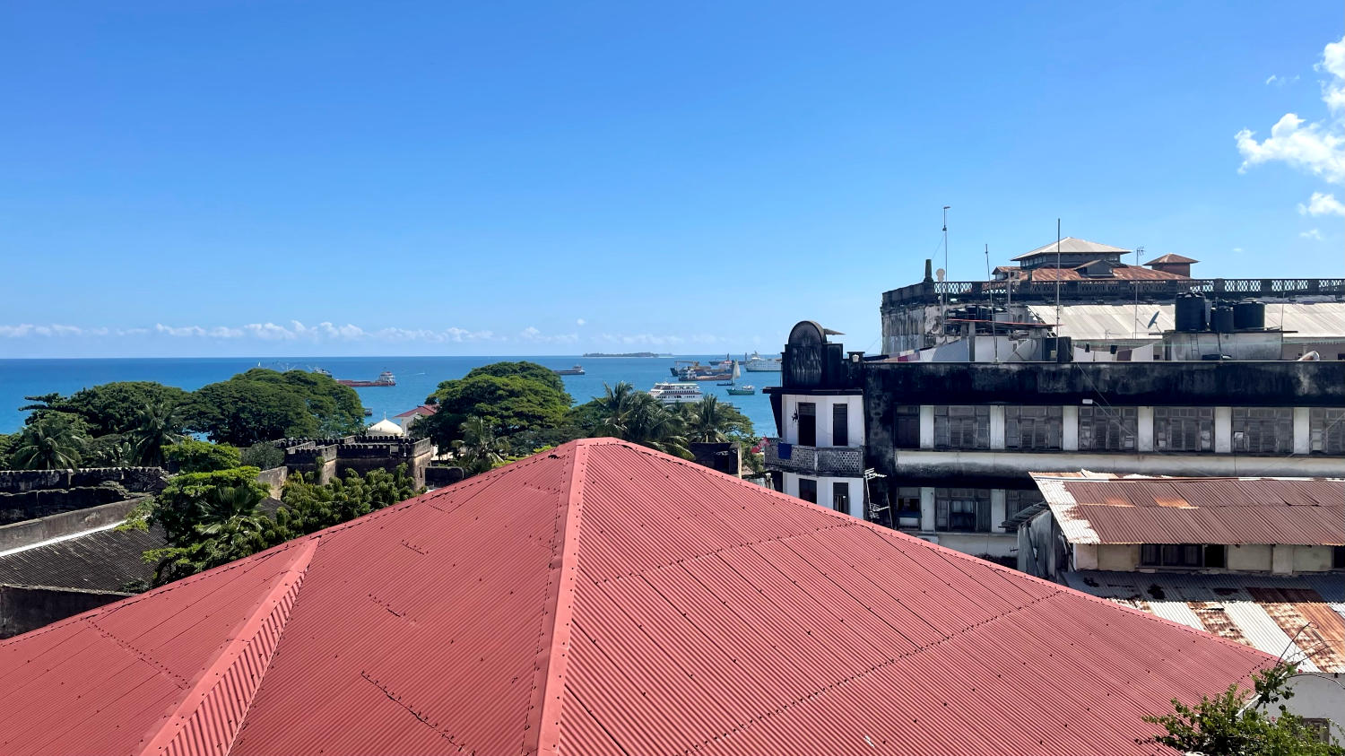 Wir wollten aber weiterhin unbedingt auf eine der berühmten Dachterrassen mit Ausblick über Stone Town, daher steuerten wir das Maru Maru Hotel an. Wie immer war die Freundlichkeit der Menschen erschlagend. Uns wurde nicht einfach nur der Weg aufs Dach erklärt, nein wir wurden nach oben geführt. Ob man sich ein Trinkgeld erwartete, oder tatsächlich einfach nur freundlich war? Keine Ahnung, wir staunten auf jeden Fall nicht schlecht, auf dem Dach nicht nur eine Bar, sondern auch einen Pool zu entdecken.