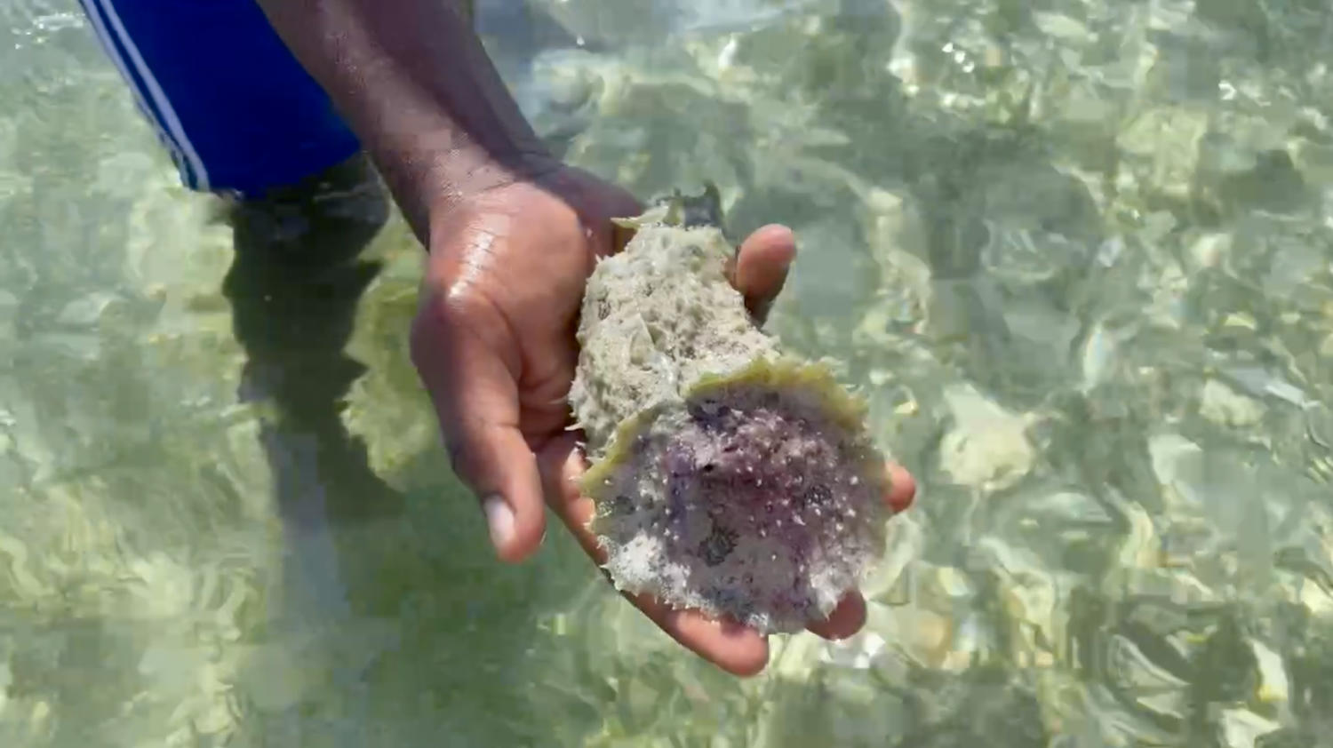 Bei Ebbe liefen wir durchs ohnehin schon warme, flache Wasser und trafen circa 400m vom Strand entfernt einen Einheimischen, der seine Algenfarm besucht. Er erzählte uns, dass diese Algen vor allem in China sehr beliebt sind und einen guten Preis erzielen.