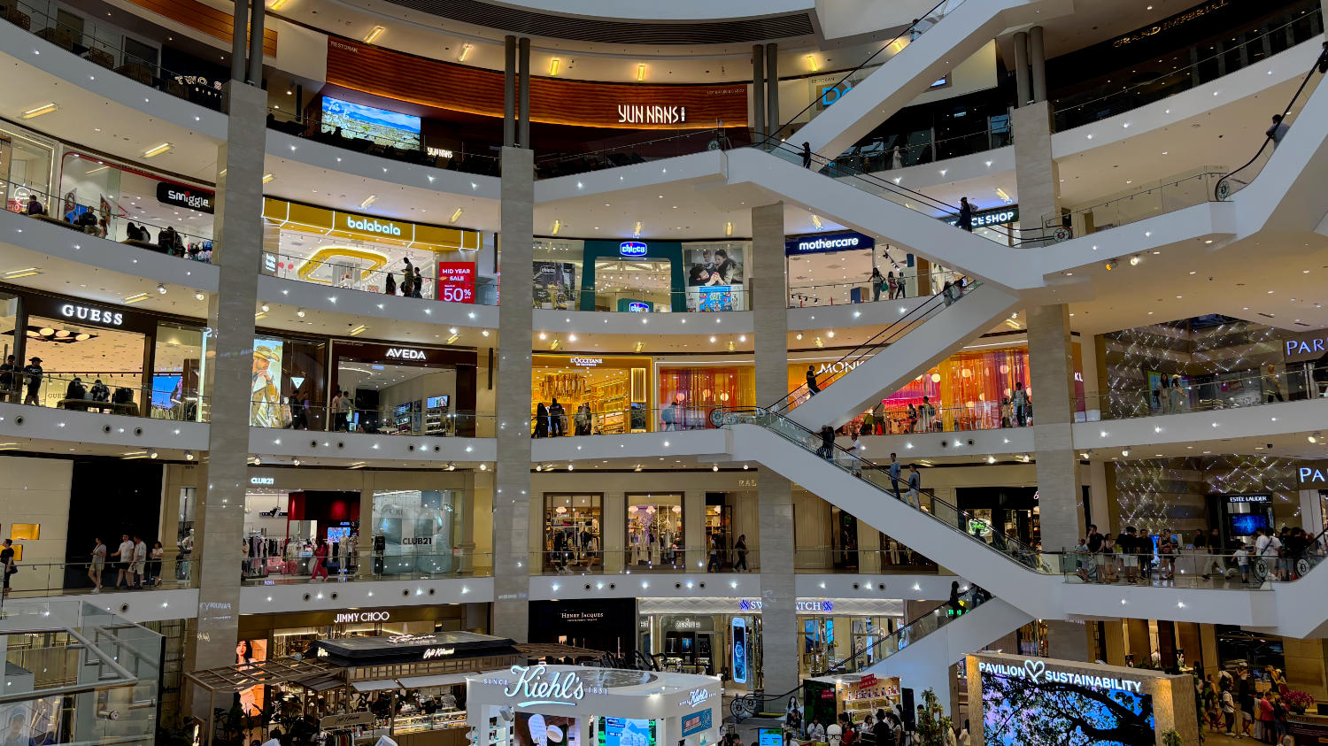 Aber zurück zum ersten Abend, als wir angekommen sind. Wir checken ein, Taschen aufs Zimmer und schon sind wir auf dem Weg zu den knapp 20 Minuten entfernten Petronas Towers. Von unten sieht Kuala Lumpur schon gar nicht mehr so super-stylisch aus. Ist aber auch erst ein erster Eindruck nach 20 Minuten Fußweg. Rund um die Petronas Towers sieht es schon wieder sehr cool aus.