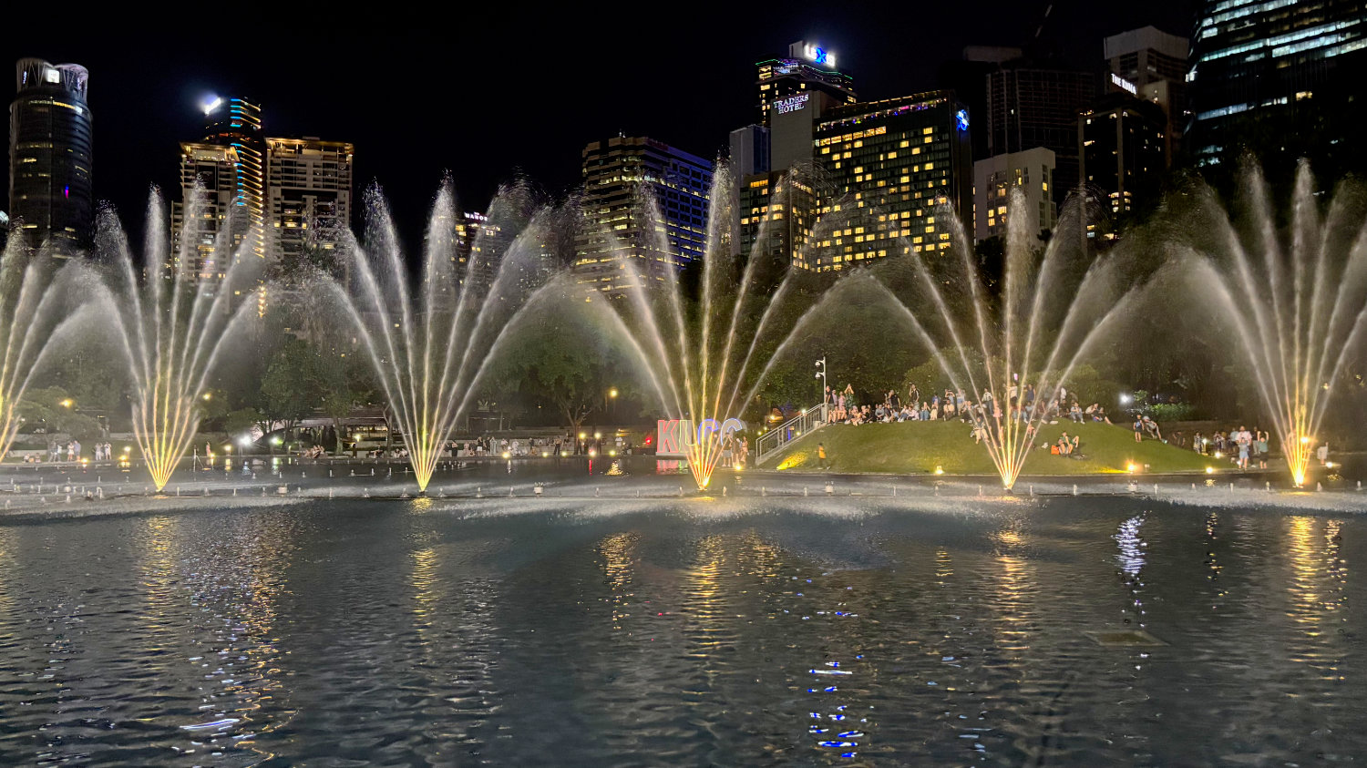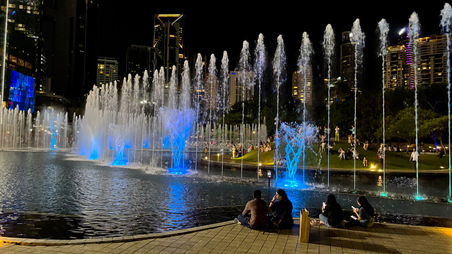 Ein paar Fotos, ein bisschen an den Wasser-Fontänen sitzen und schon machen wir uns zurück zum Hotel. Wir sind ein wenig müde und es sit schließlich auch schon nach Mitternacht.