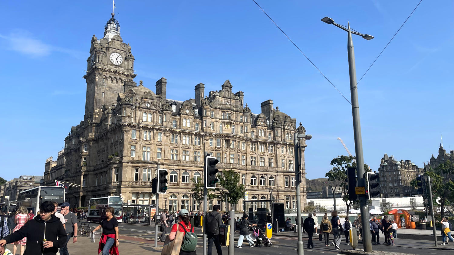 Von der Straßenbahnhaltestelle St. Andrew Square spazieren wir vorbei am Hotel „The Balmoral“, wo J.K. Rawling im Jahr 2007 die letzten Zeilen zum Buch „Harry Potter und die Heiligtümer des Todes“ schrieb, zum Scott-Denkmal und zur National Gallery of Scotland, über die lange Treppe hoch zur Royal Mile, der berühmten Einkaufsstraße zwischen Edinburgh Castle und Holyrood Palace.