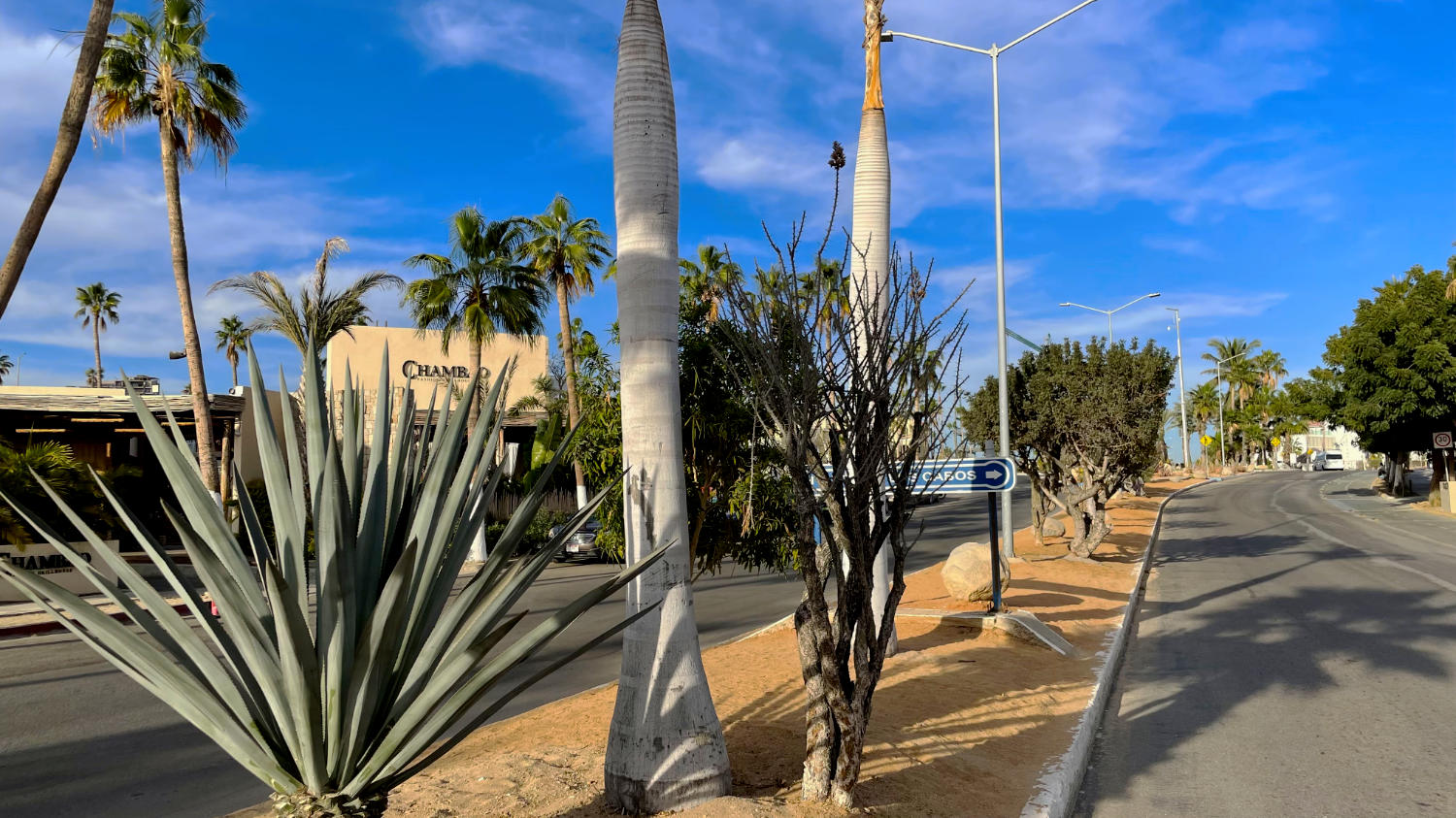Wir überfliegen Guadalajara und nach insgesamt 5 Flug-Stunden landen wir auf dem Flughafen Cabo San Lucas. Auch er wirkt seeeehr entspannt. Wir fühlen uns gleich wohl. Schnell das Auto abholen und schon führt uns das Navi zu unserem AirBnB in der Nähe von San Jose del Cabo. Der Knaller ist die Route. Das Navi schickt uns tatsächlich durch ein – glücklicherweise – ausgetrocknetes Flussbett. 😳