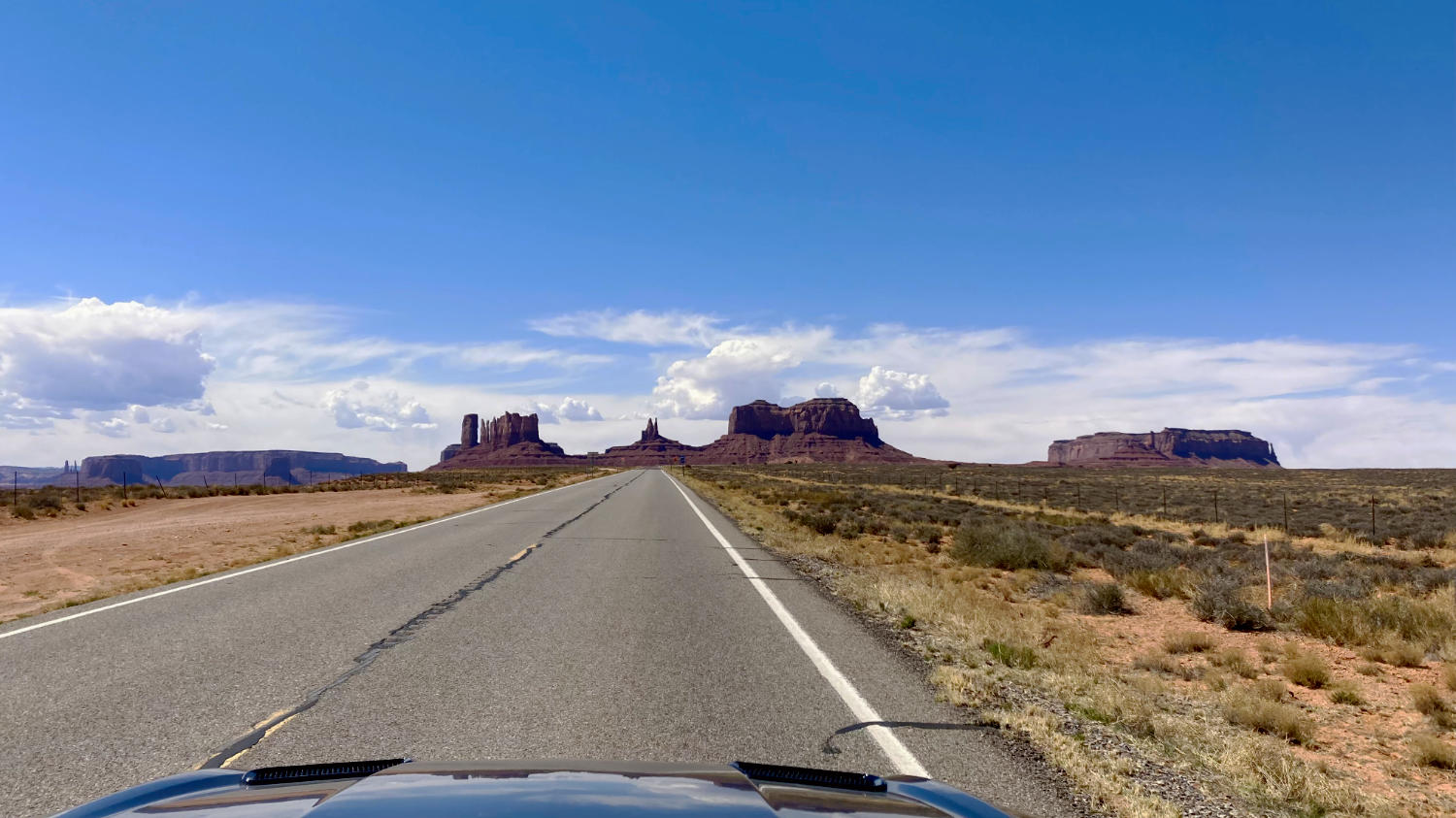 Um 9:30 Uhr machen wir uns bei sonnigen 22 Grad und natürlich mit geöffnetem Verdeck von Moab aus auf den Weg zum 148 Meilen entfernten Monument Valley.