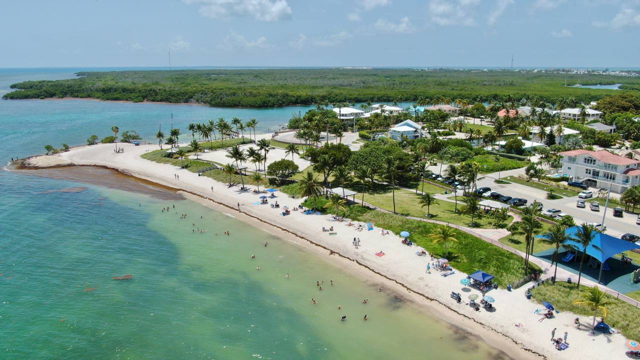 2. August 2022 Sombrero Beach, Marathon Key Schöner Strand mit schattenspendenden Palmen, Picknick-Plätzen für ein Roadtrip-Frühstück, Umkleiden etc. Sombrero Beach, Marathon Key